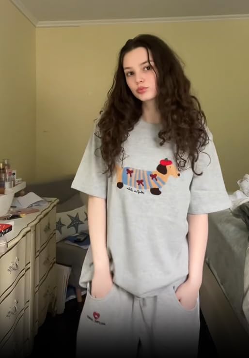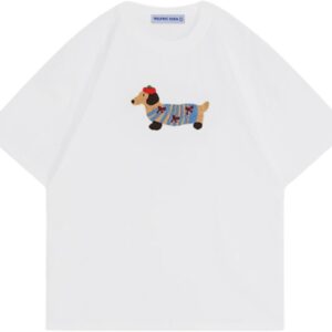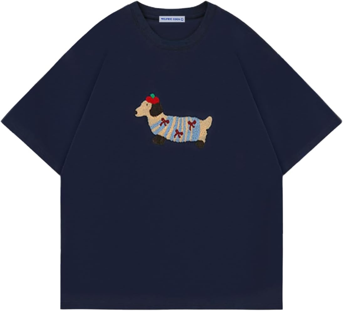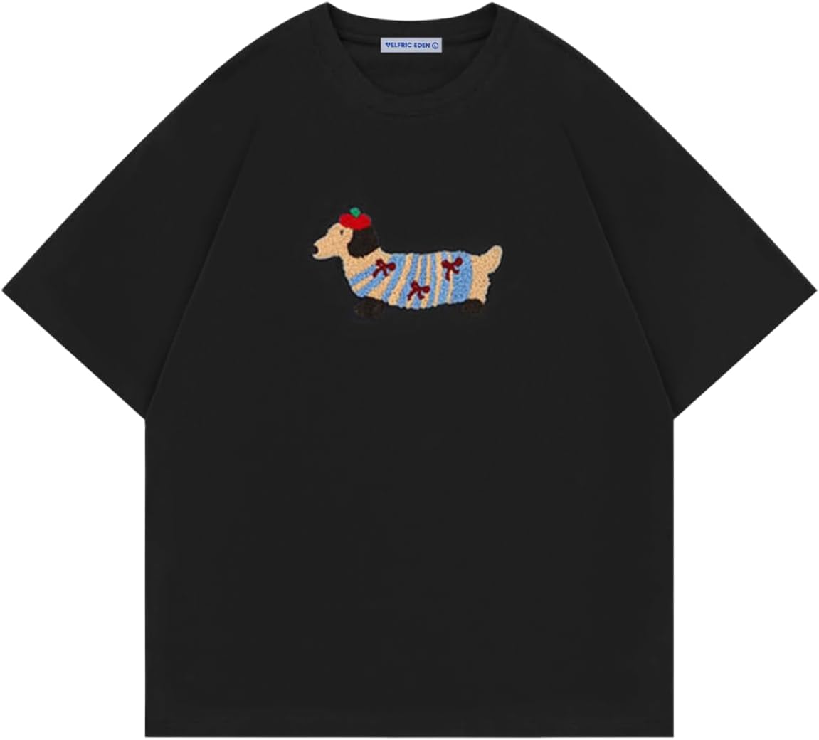 Aelfric Eden Mens Oversized Graphic Tees Dog Embroidery Casual Women Tshirts Short Sleeve Top Cotton Cute Tee Shirt