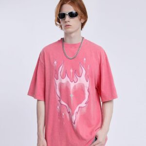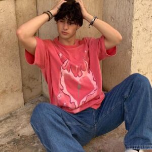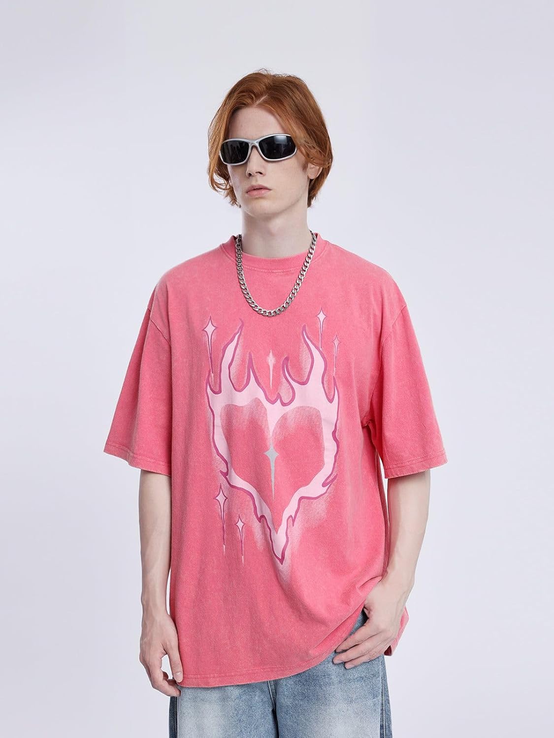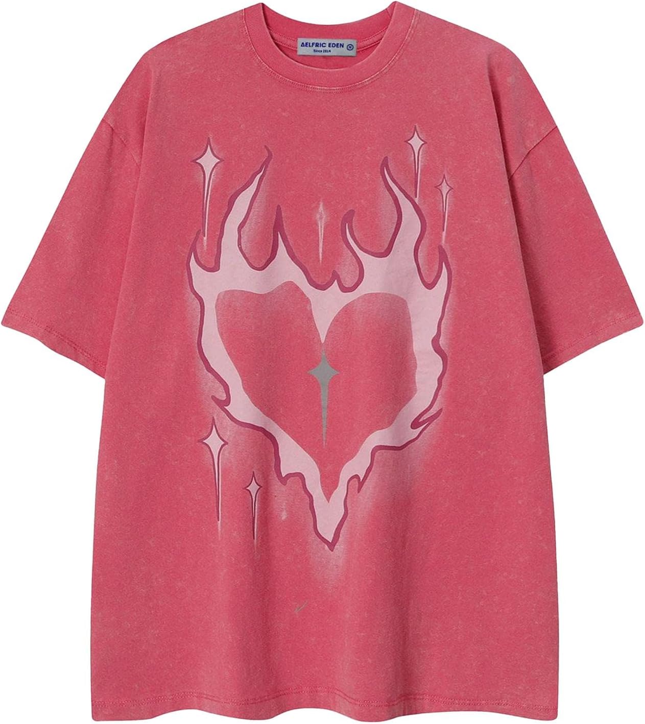 Aelfric Eden Mens Oversized T Shirts Tees Distorted Portrait Print Crew Neck Cotton Tops Streetwear Casual Shirt
