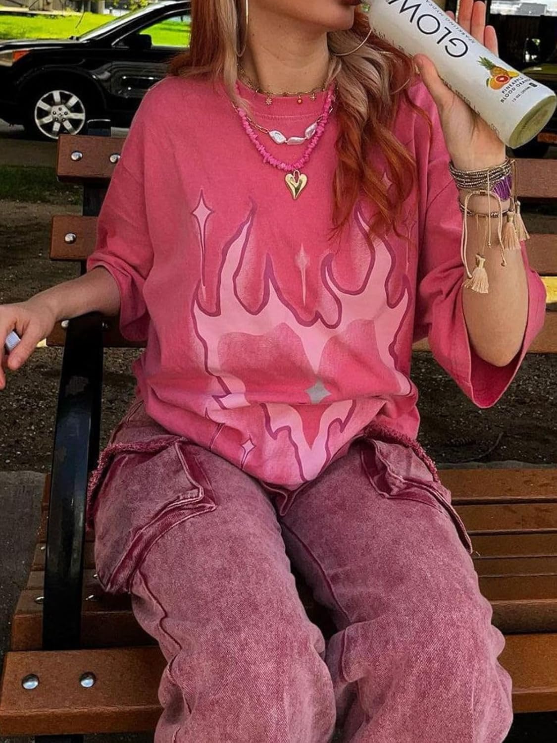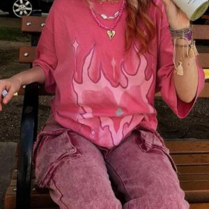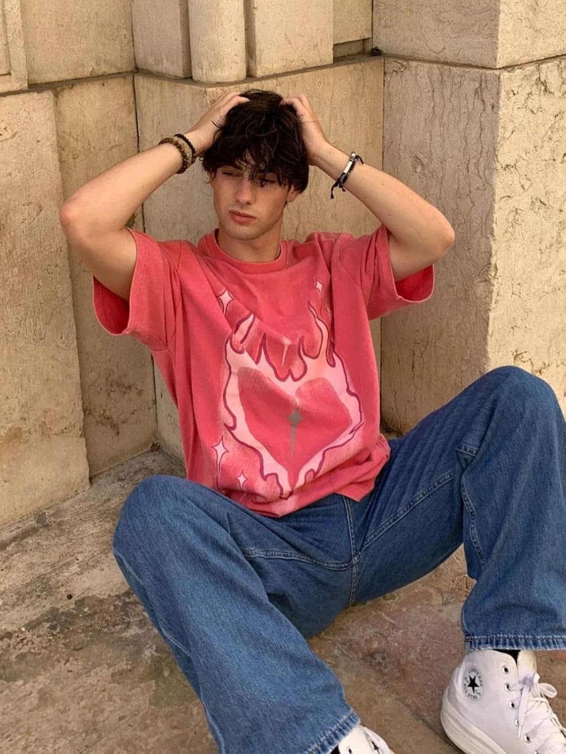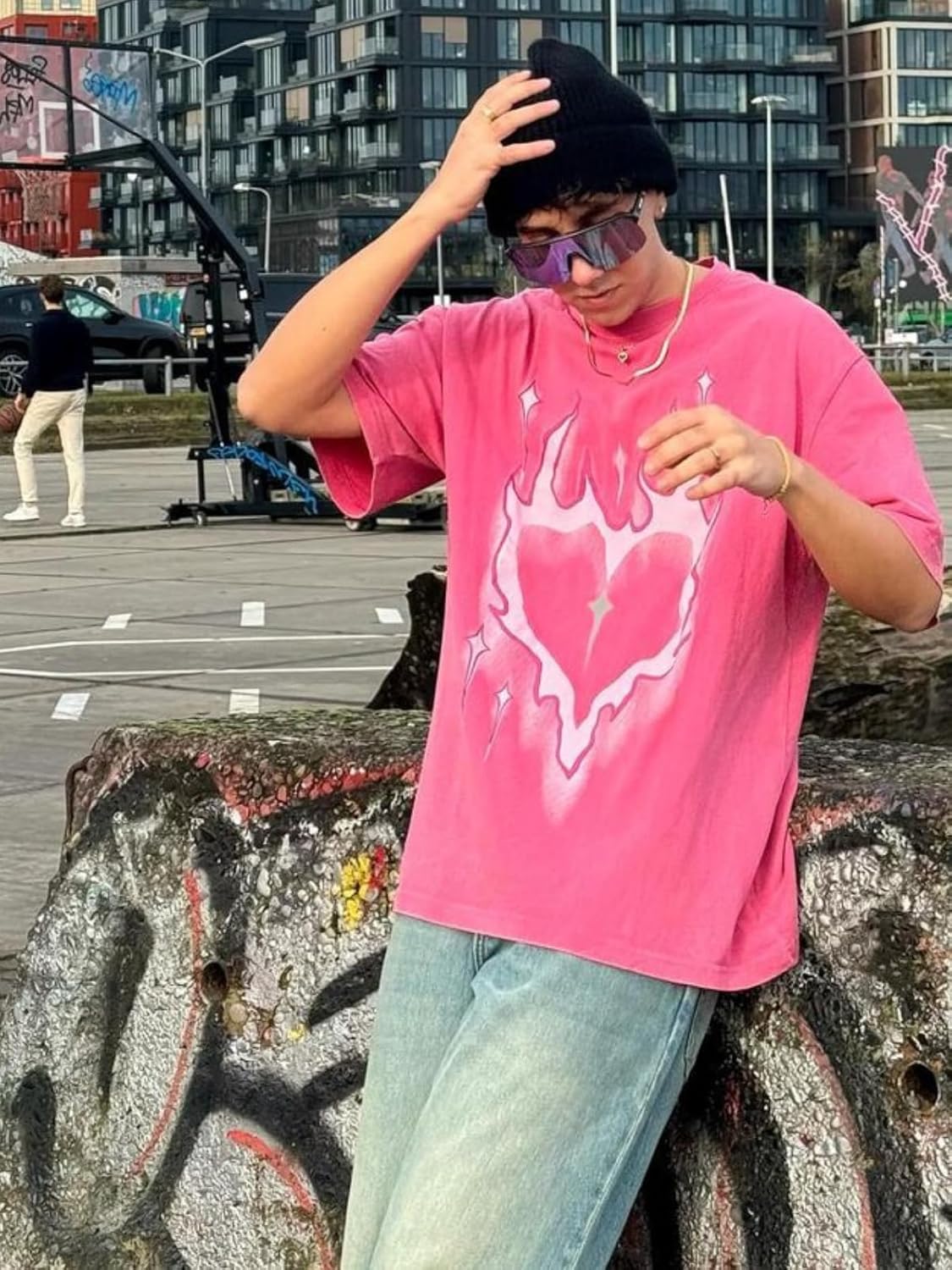 Aelfric Eden Mens Oversized T Shirts Tees Distorted Portrait Print Crew Neck Cotton Tops Streetwear Casual Shirt