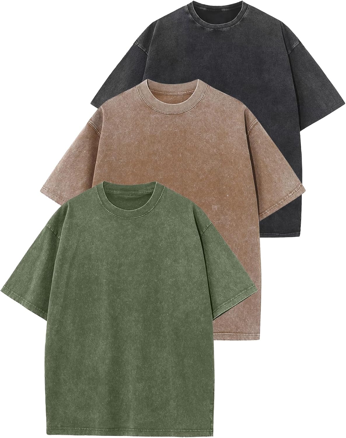 Arssm 3 Pack Men Oversized T Shirts Vintage Tee Loose Fit Short Sleeve Casual Streetwear Baggy Washed Unisex Tops