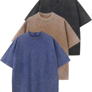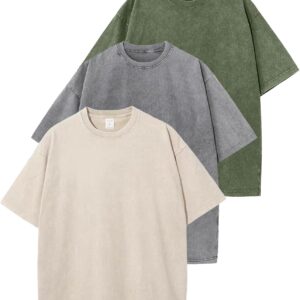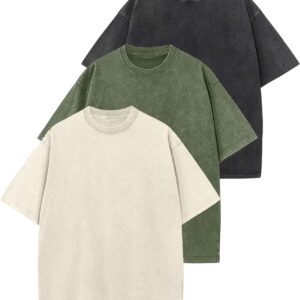 Arssm 3 Pack Men Oversized T Shirts Vintage Tee Loose Fit Short Sleeve Casual Streetwear Baggy Washed Unisex Tops quantity