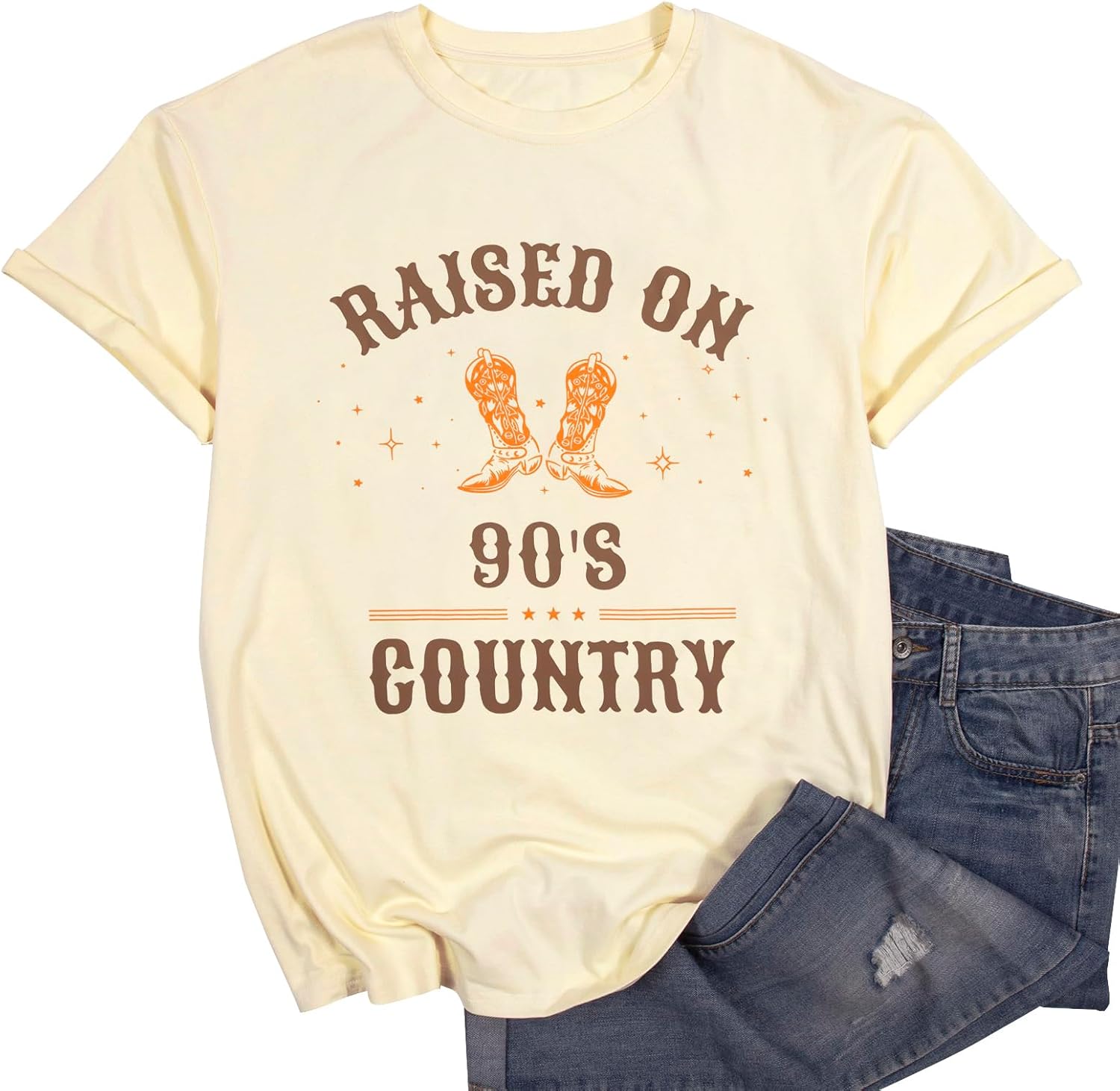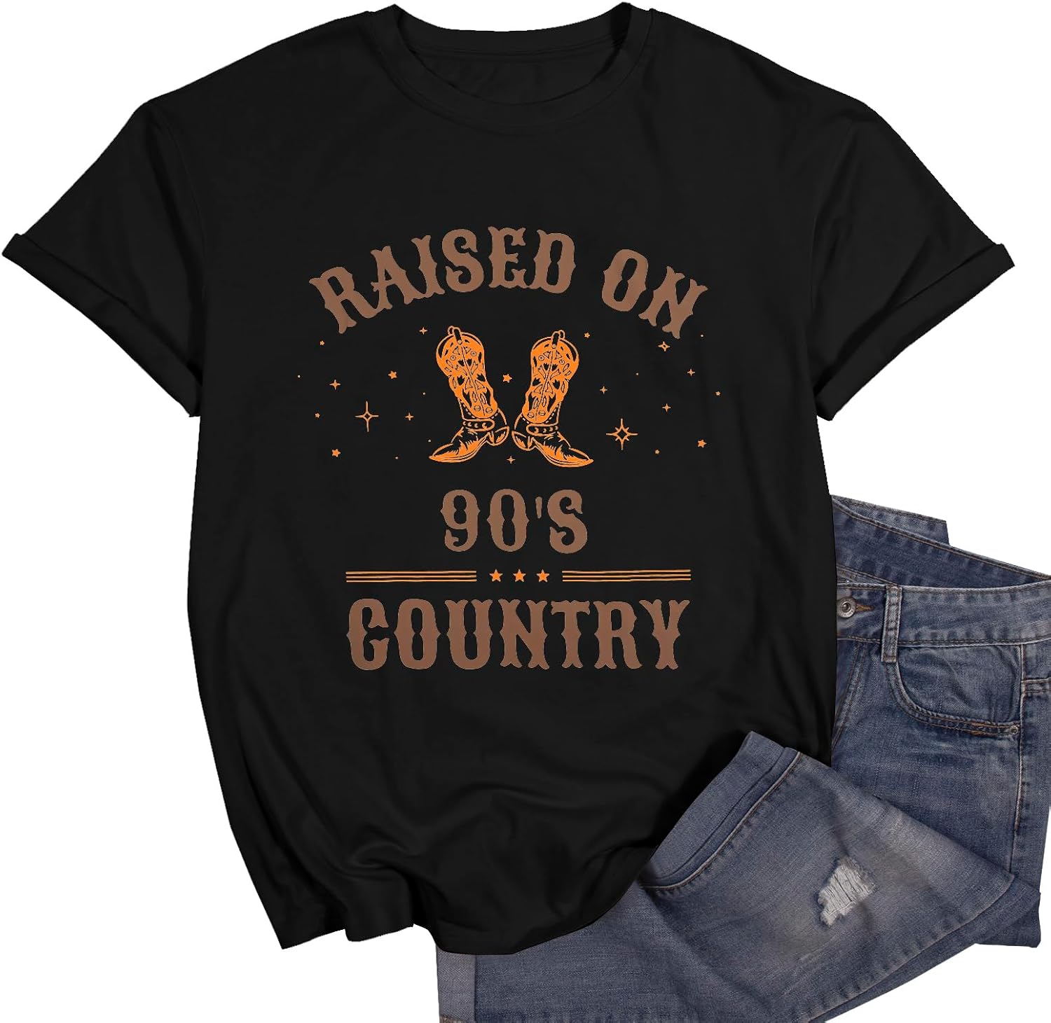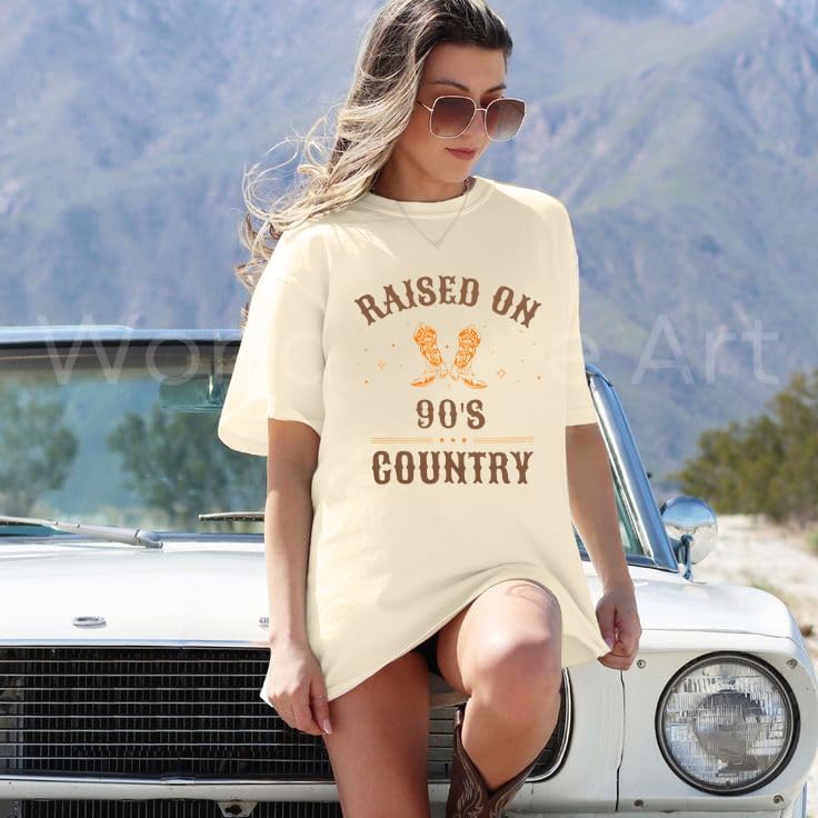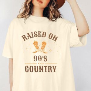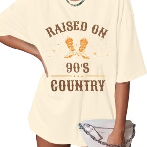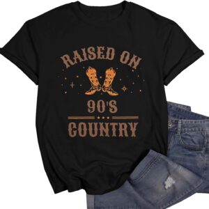 - Design: Raised on 90s country letter print,womens country music graphic tee,vintage tees for women,country shirts women,music party tops,casual loose crew neck country music t-shirts tops,country music fan tee, gift for country music lover,suitable for women of all ages.