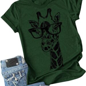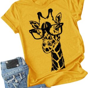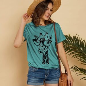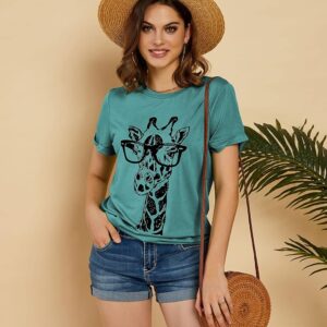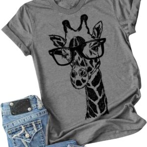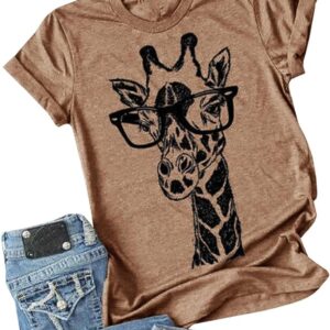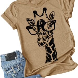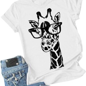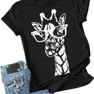 Auburet Womens Giraffe T Shirt Summer Funny Graphic Short Sleeve Crewneck Tees Casual Shirt Tops