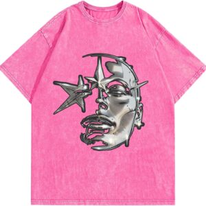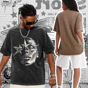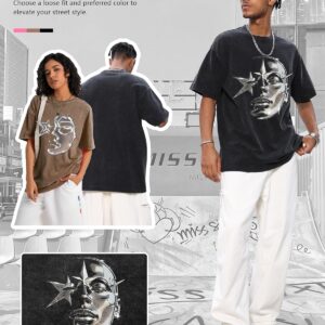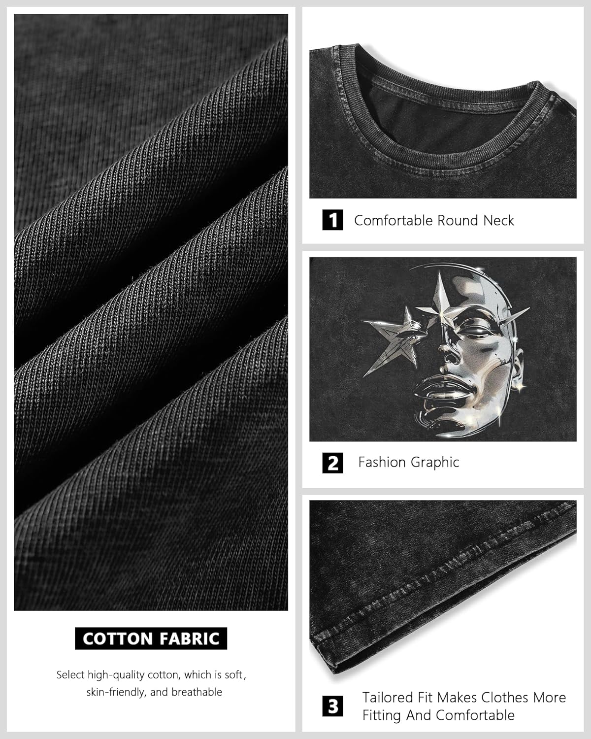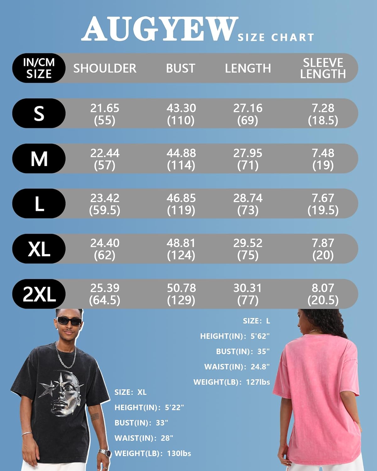 AugYew Men’s Graphic Tees Shirt Unisex Cotton Oversized T-Shirt Short Sleeve Vintage Streetwear Casual Tee Top