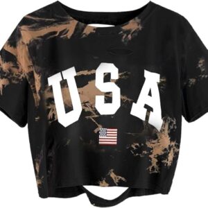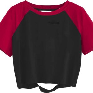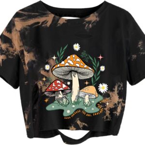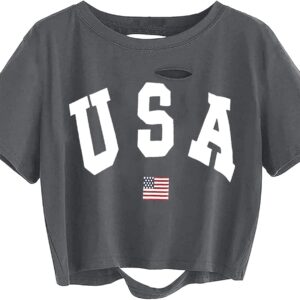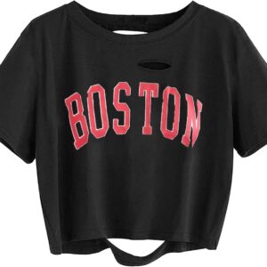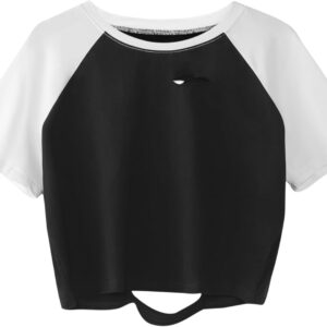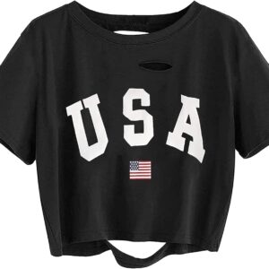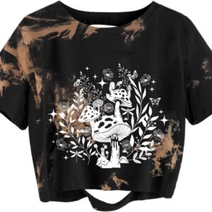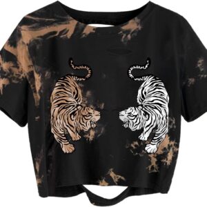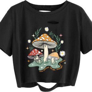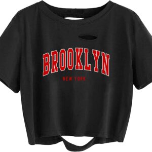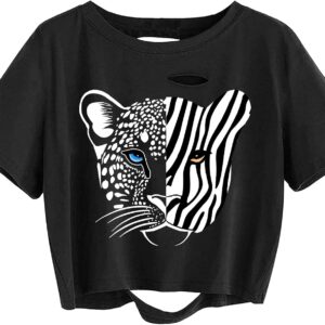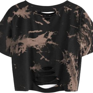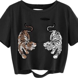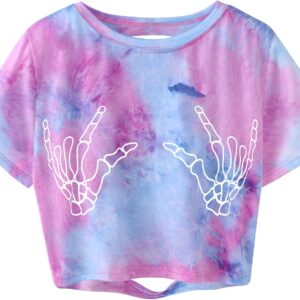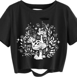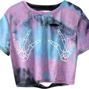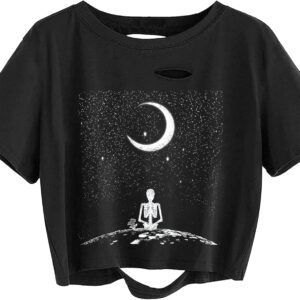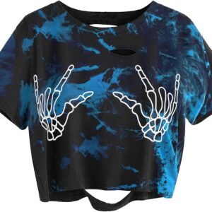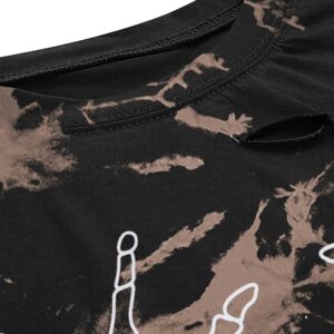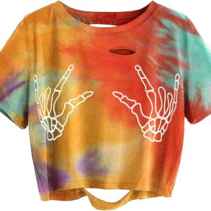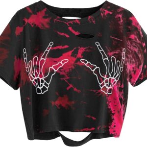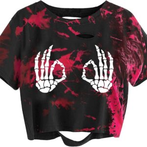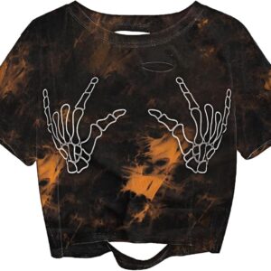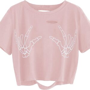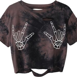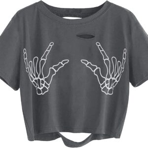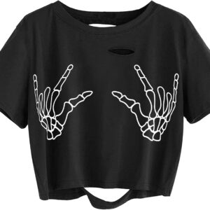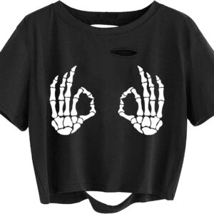 Avanova Women Skull Finger Graphic Distressed Tee Shirt Ripped Short Sleeve Crop Tops