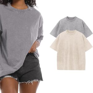 BINTEHGS Oversized Grunge Vintage t Shirts for Women Short Sleeve Cotton Casual Baggy Tees Teens Trendy Crew Neck Loose Tops quantity