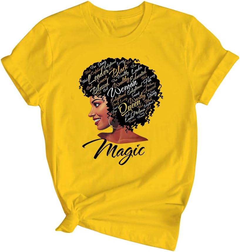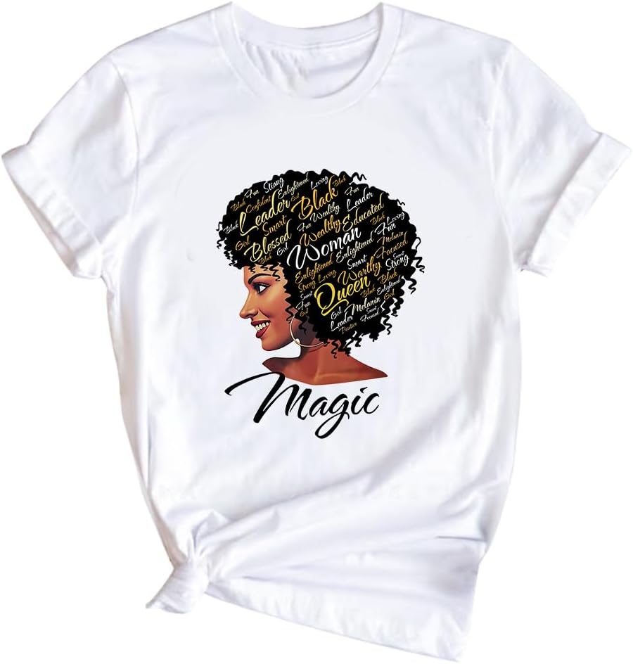 Music Tees Concert Shirt Black Power Black Girl Graphic T-Shirt Afro Woman Black Girl Tee Afro Queen Magic Tops