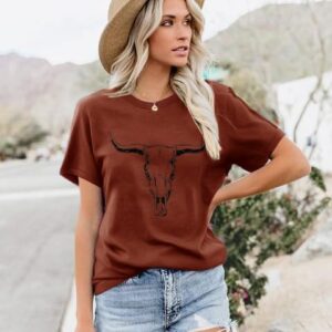 Vintage Western Rodeo Graphic Tee Bull Skull Oversized Cowgirl Casual Top