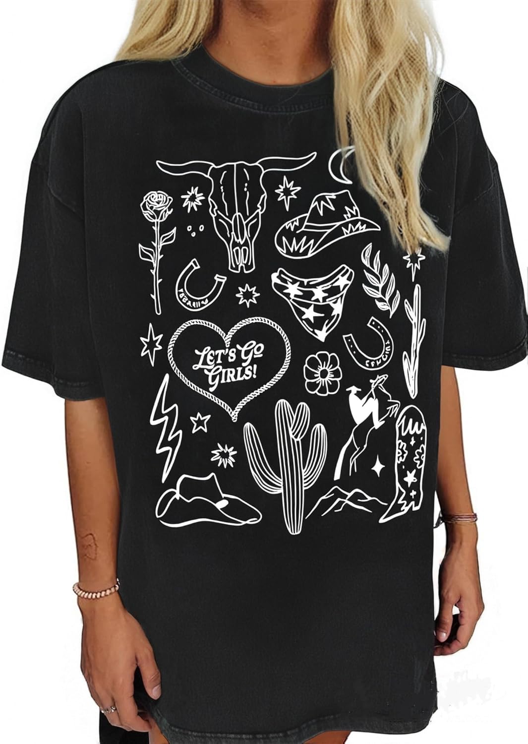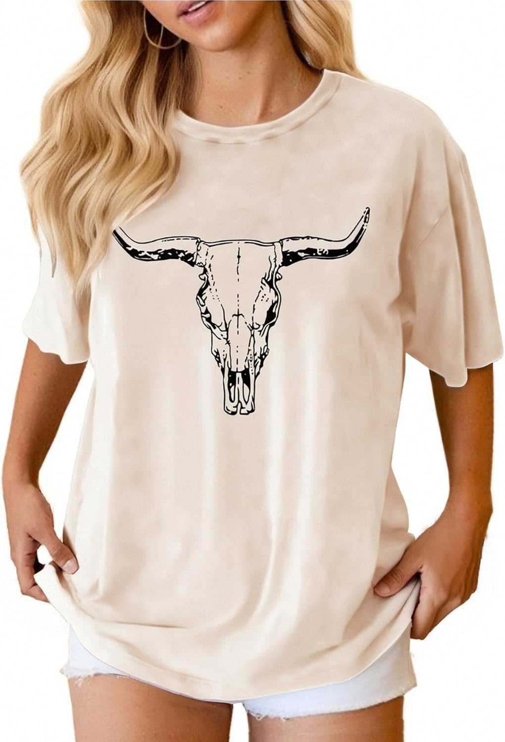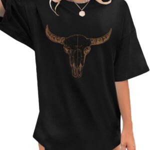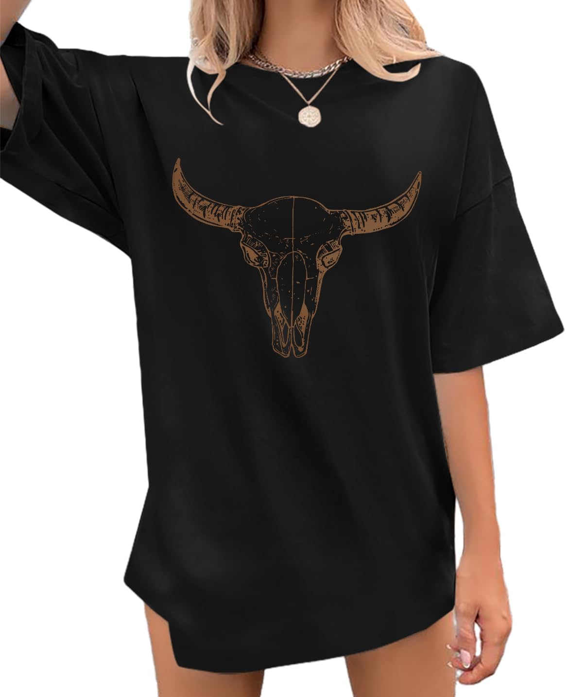 Cow Skull Shirts for Women Western Graphic T Shirt Oversized Country Music Shirt