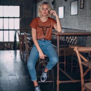 Boho Cow Skull Shirt Women Cowgirl t Shirt Vintage Western Rodeo Graphic Tee