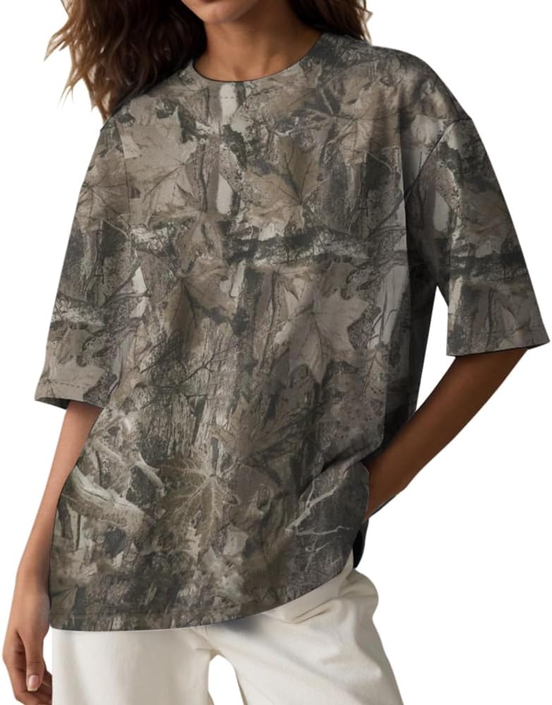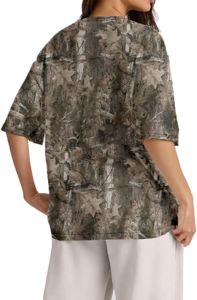 Camo Oversized Shirt Y2k Crewneck Maple Leaf Printed Short Sleeve Unisex Summer Graphic Tees