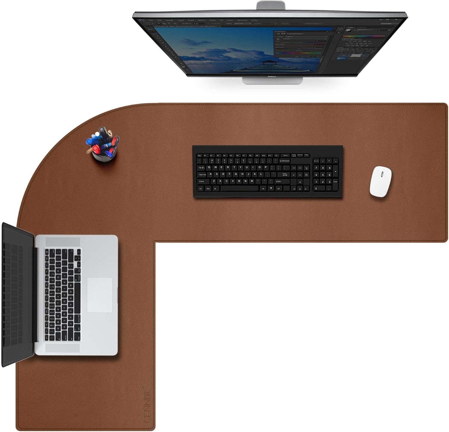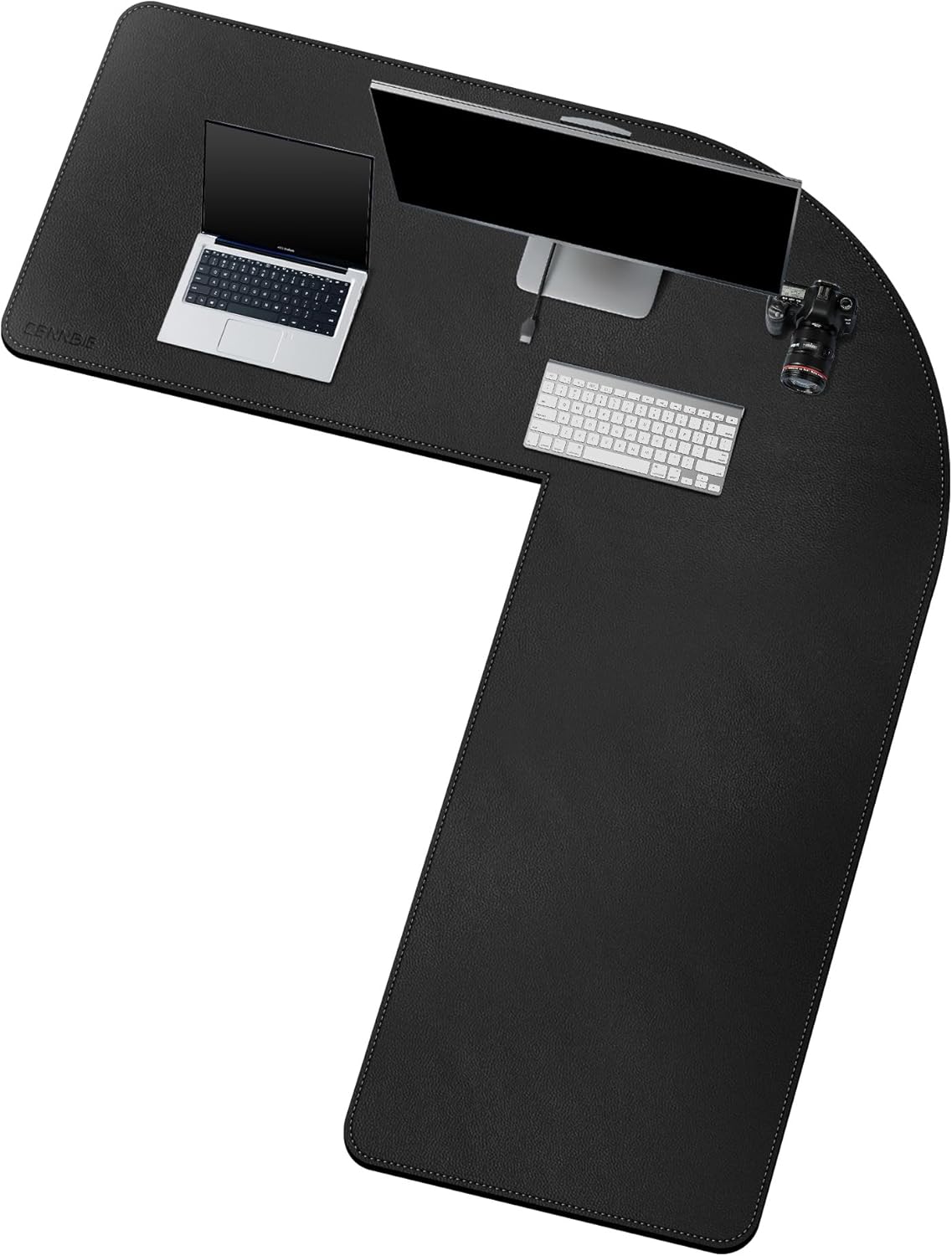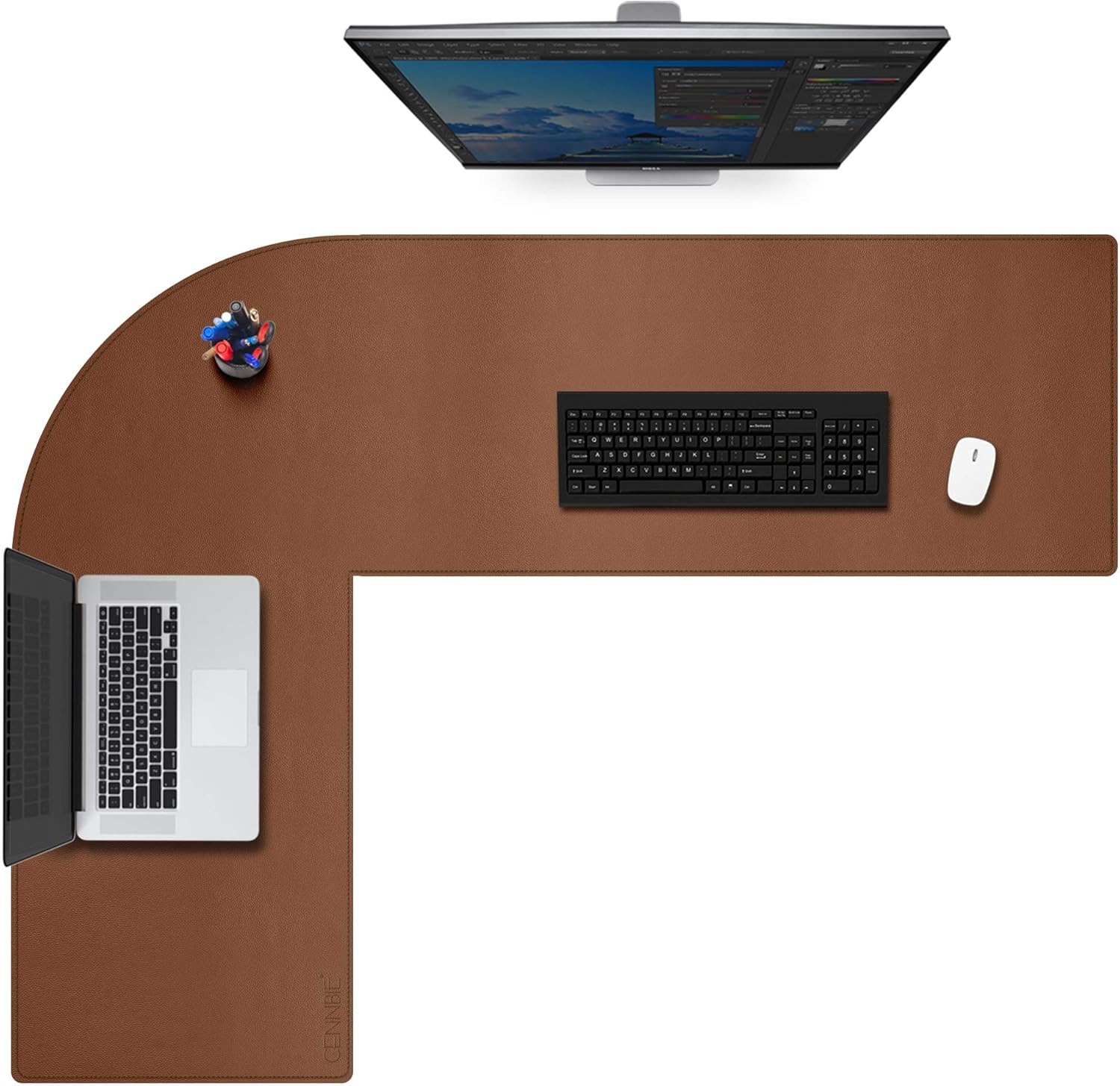 The CENNBIE L-shaped leather desk pad is the perfect way to bring versatility and modern panache to your workspace. Perfect for using as a reading or writing surface, as well as hold your keyboard and mouse.