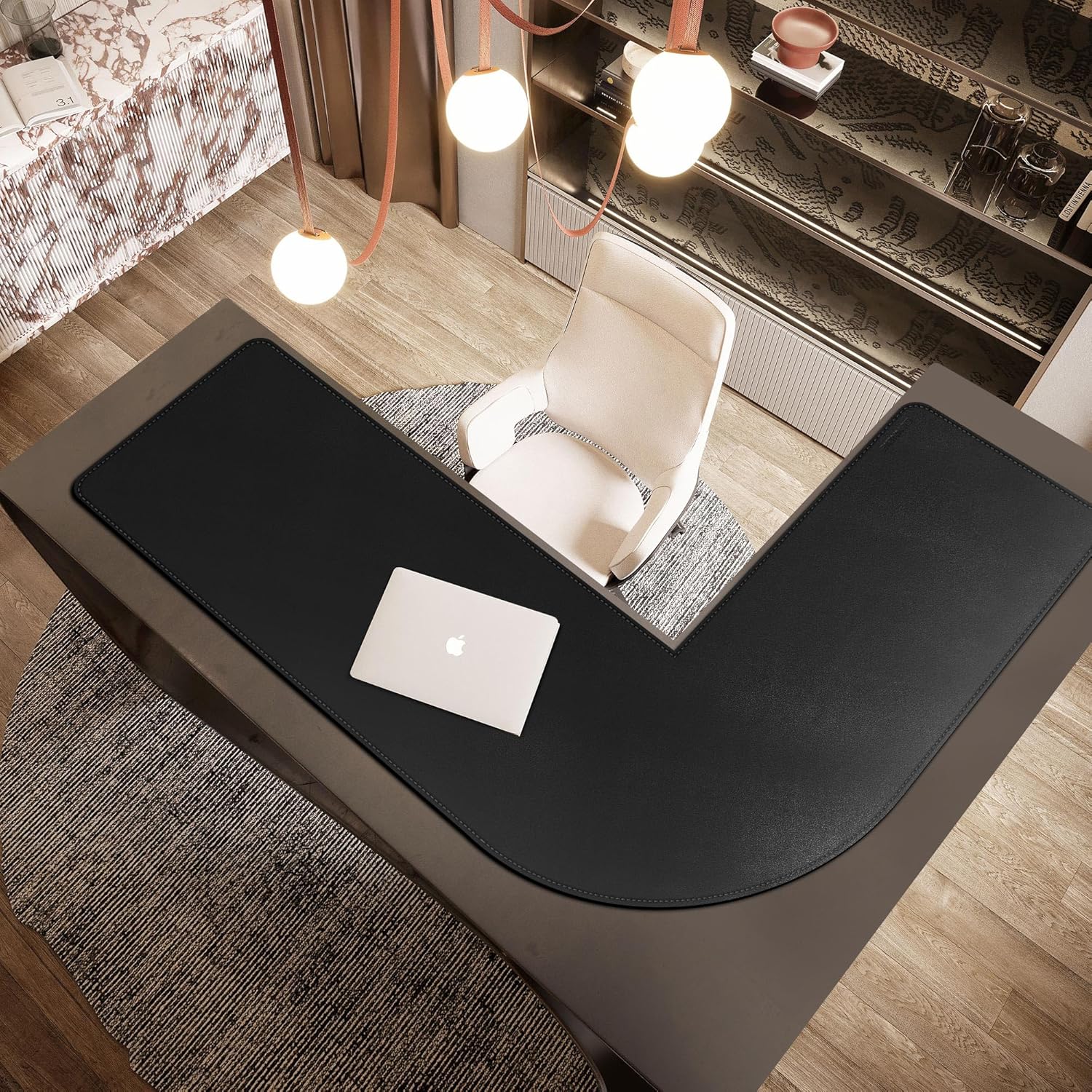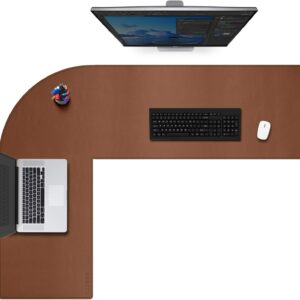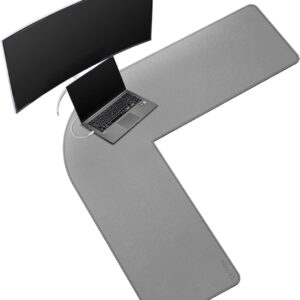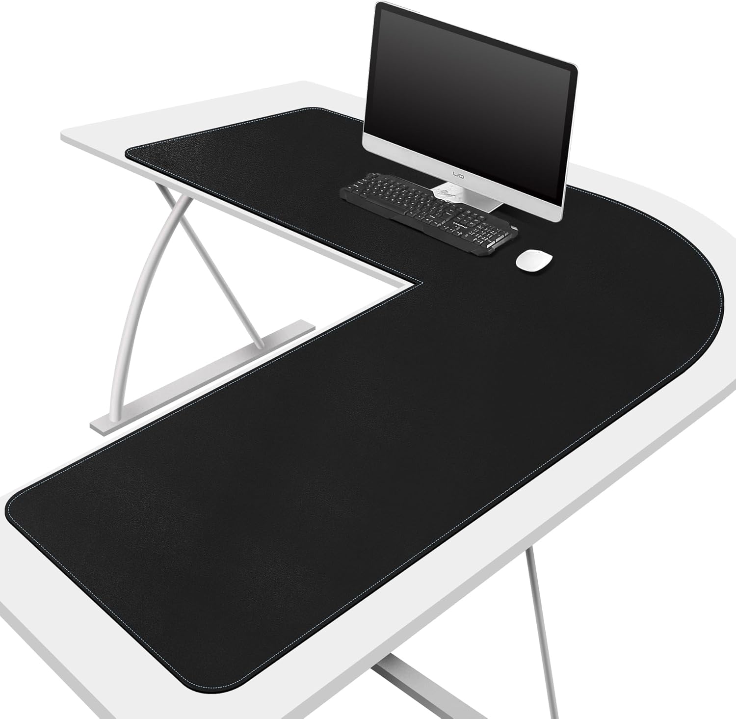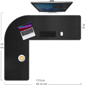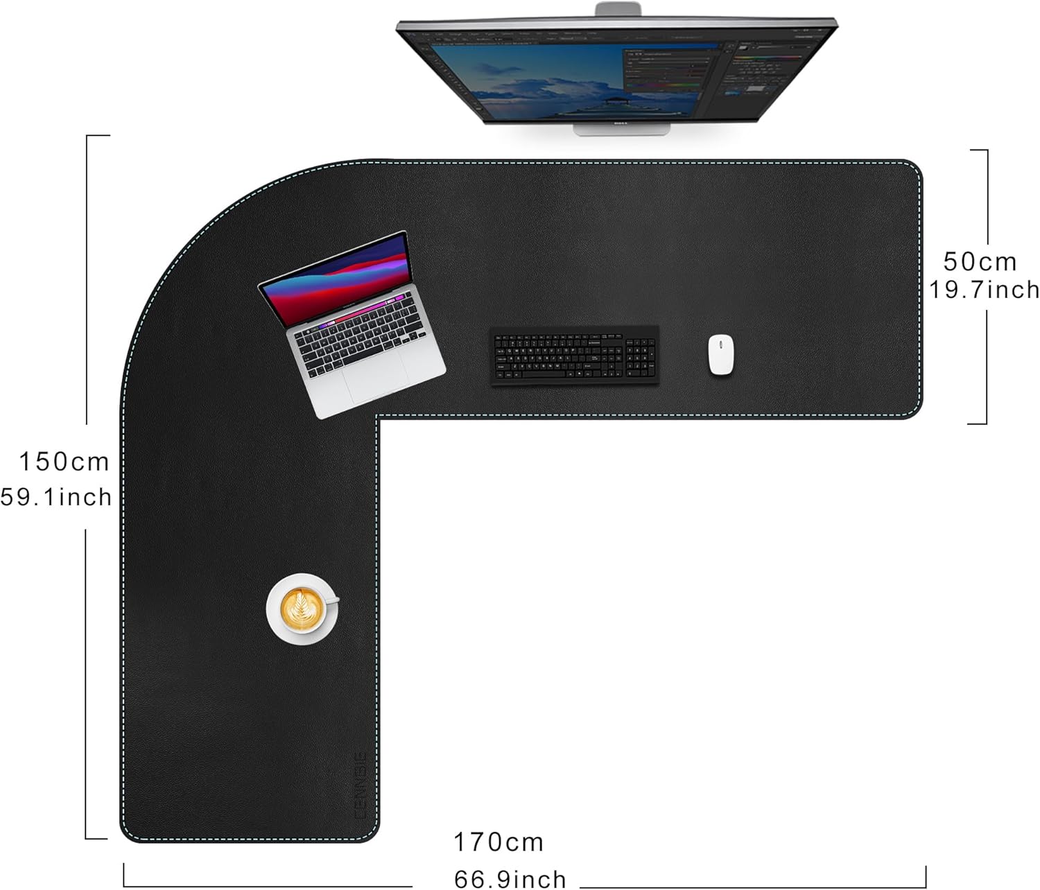 Corner desk pad fits perfectly on top of L-shaped desks and workspaces, and has plenty of space, can accommodate laptop PC, monitor, keyboard, mouse, notebook, cup and more.