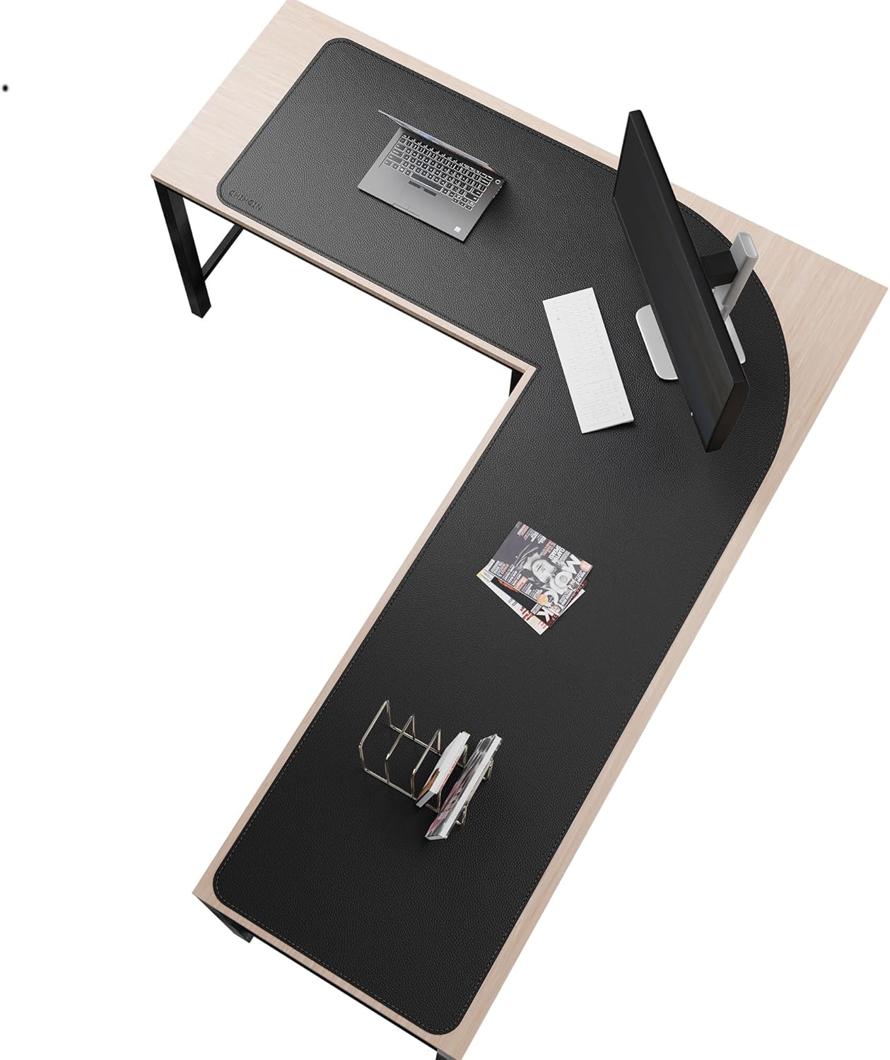 Chihein Leather Desk Mat L Shaped 61” x 80.7” x 23.6” – Big Gaming Corner Desk Pad (Black)