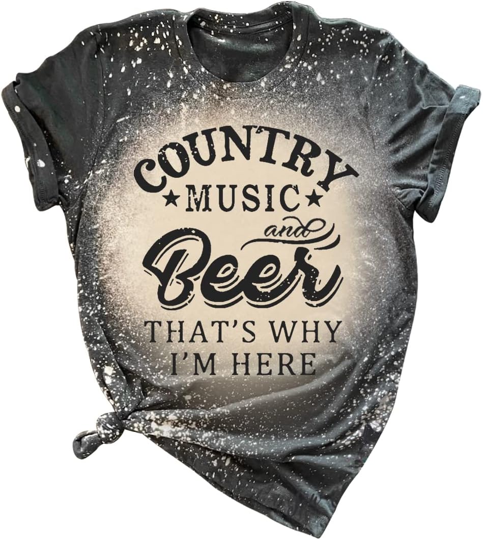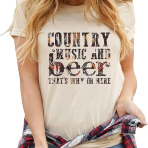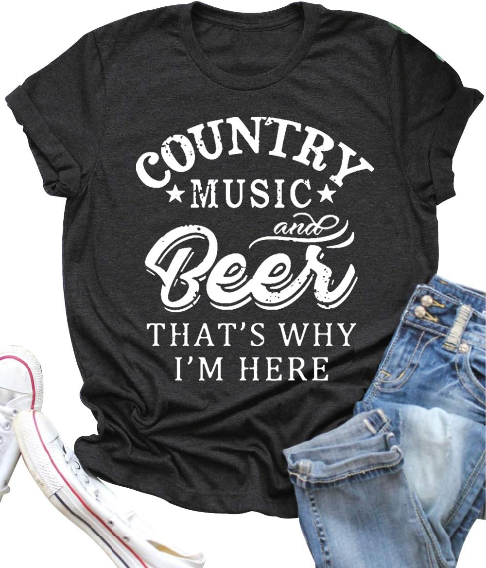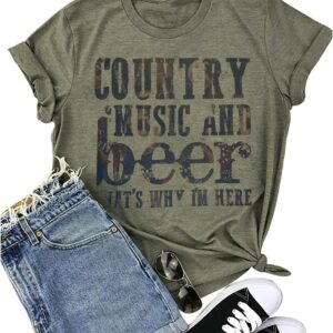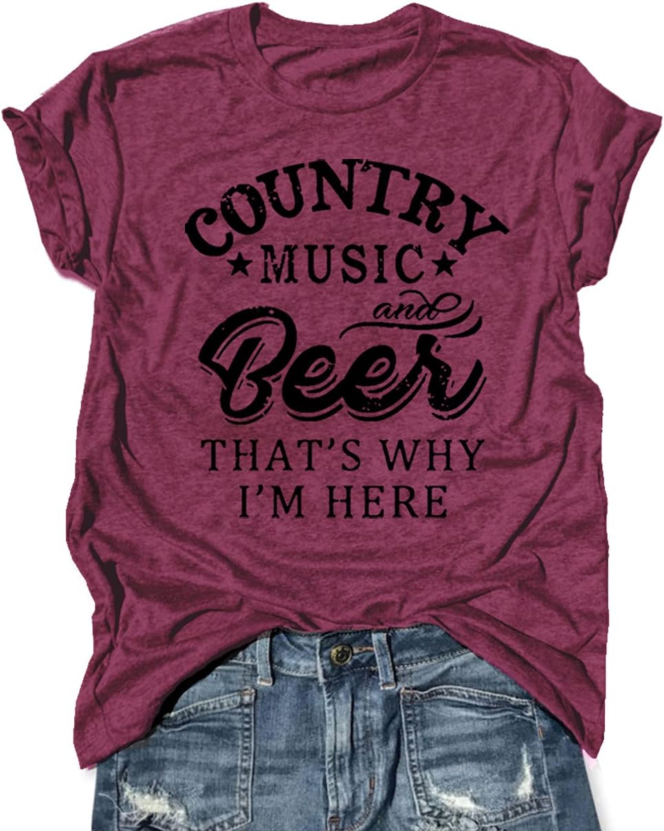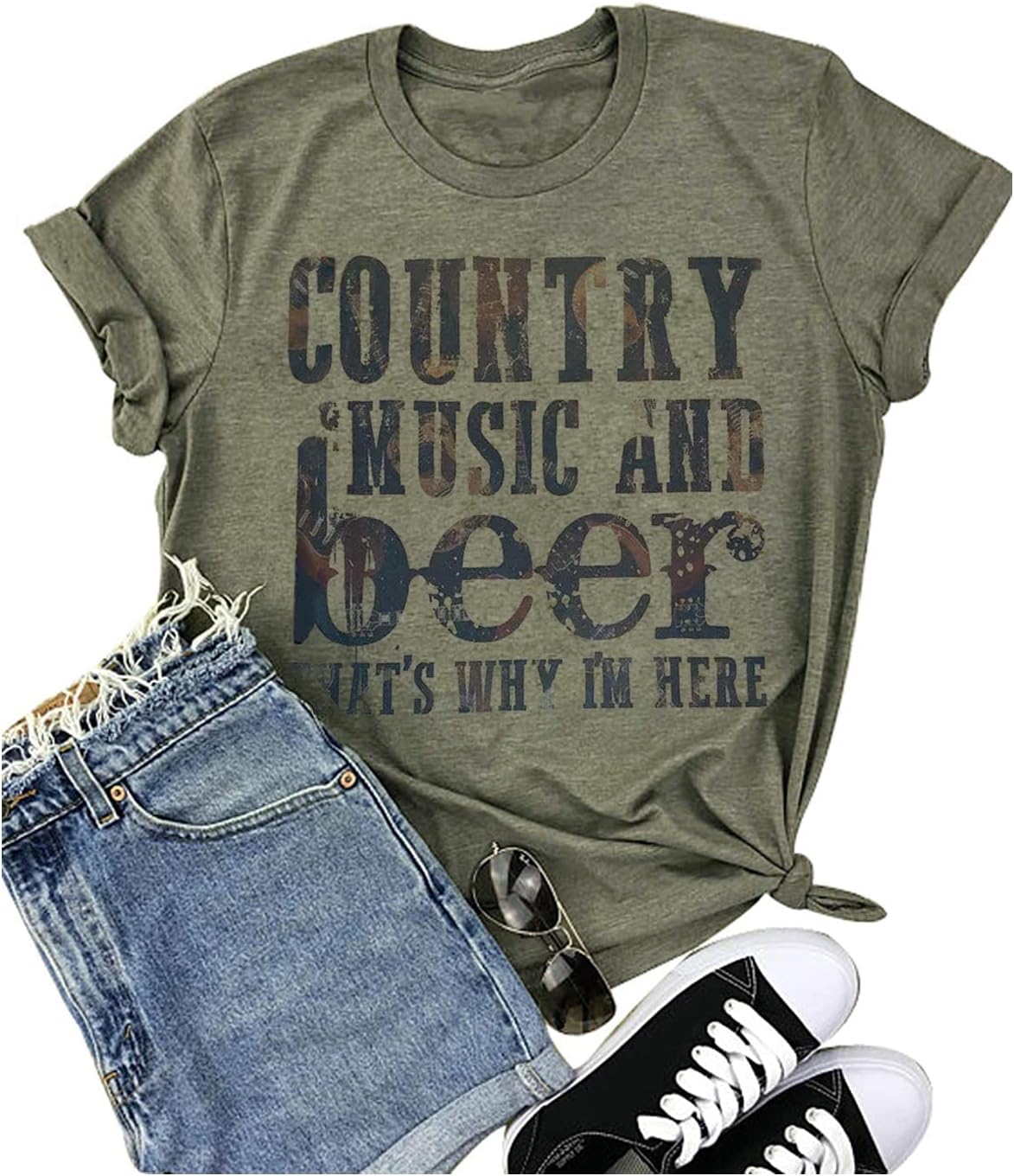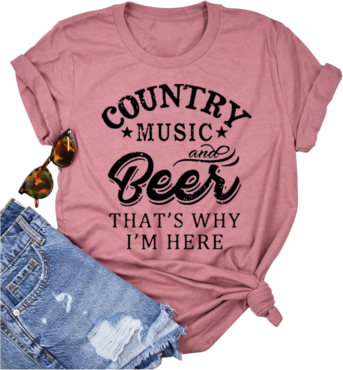 Vintage and Casual Style Country Shirt, Funny Country Music Letter Print Western Rodeo Graphic Shirt,Summer Country Music Party Casual T Shirt