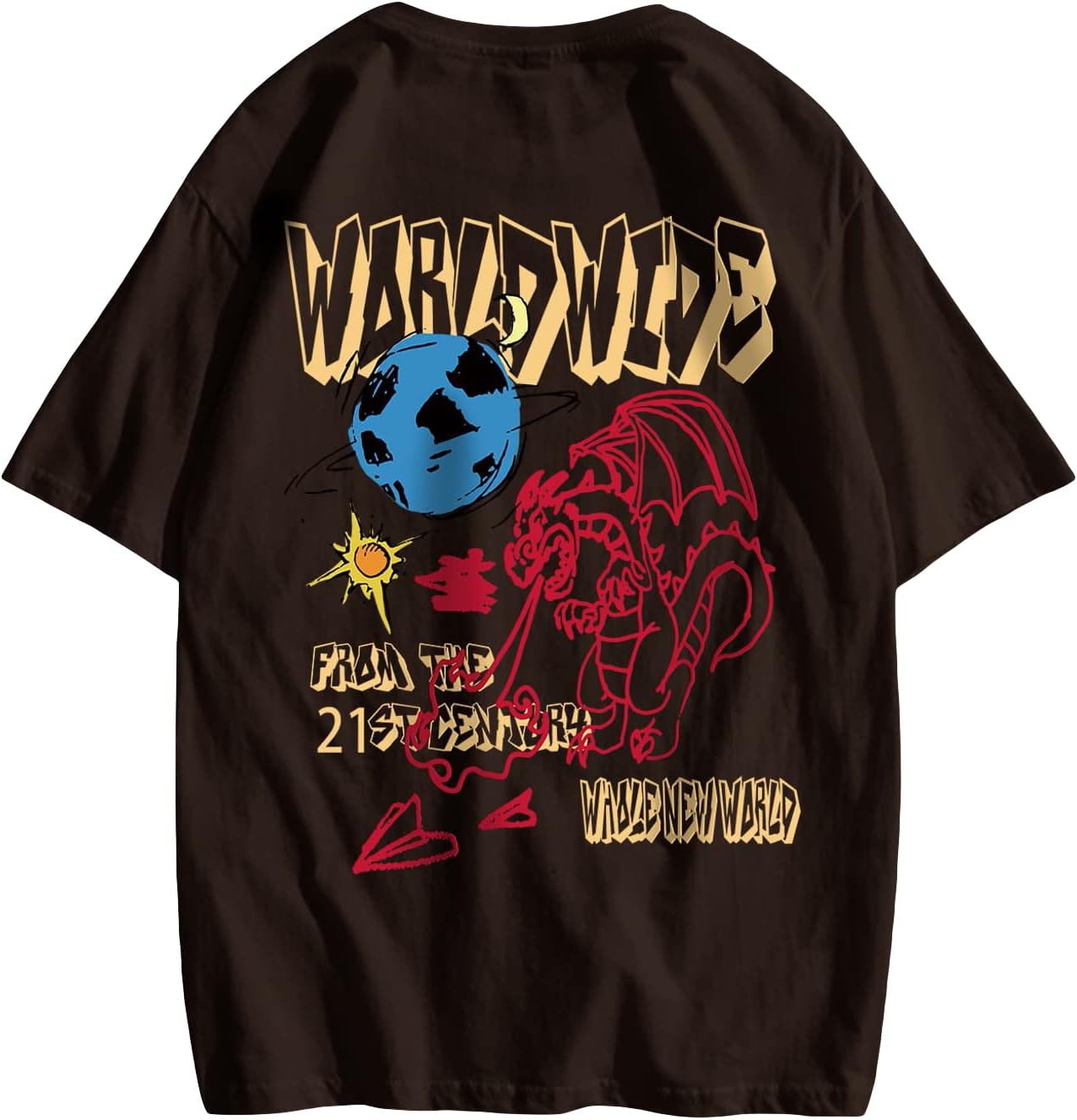 COZYEASE Men’s Letter Graphic Tee Casual Short Sleeve Round Neck Summer Shirt Streetwear Top