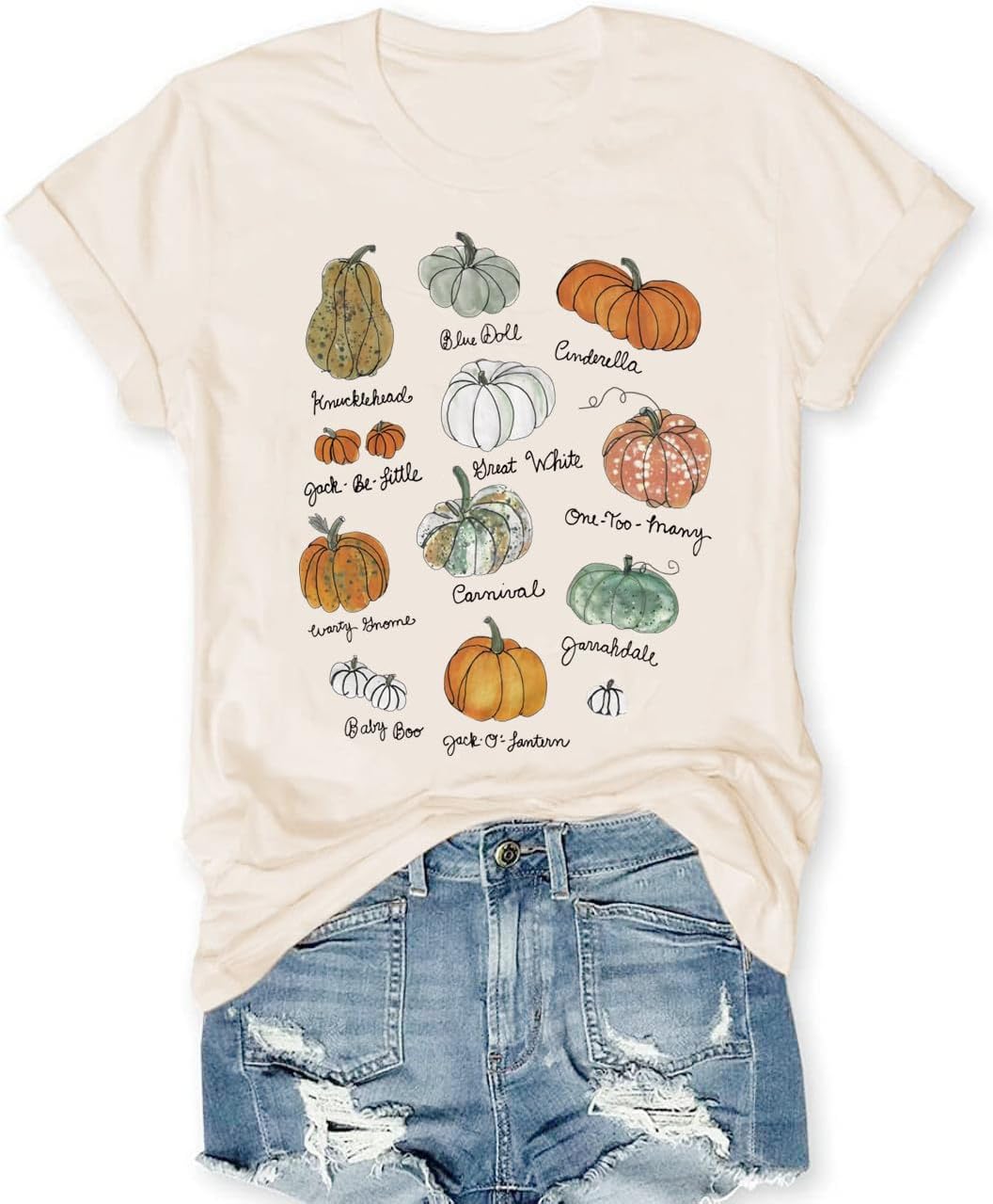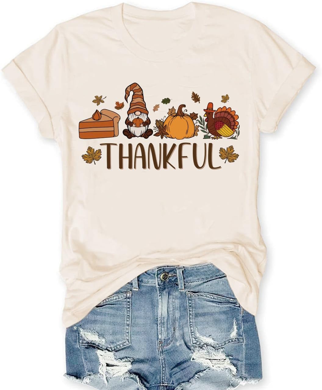 - Features: Women Short Sleeve Crew Neck Fall Shirts;Halloween Thanksgiving Gift Tops Casual Style Autumn T-Shirt Cute Thankful Pumpkin Turkey Graphic Tees