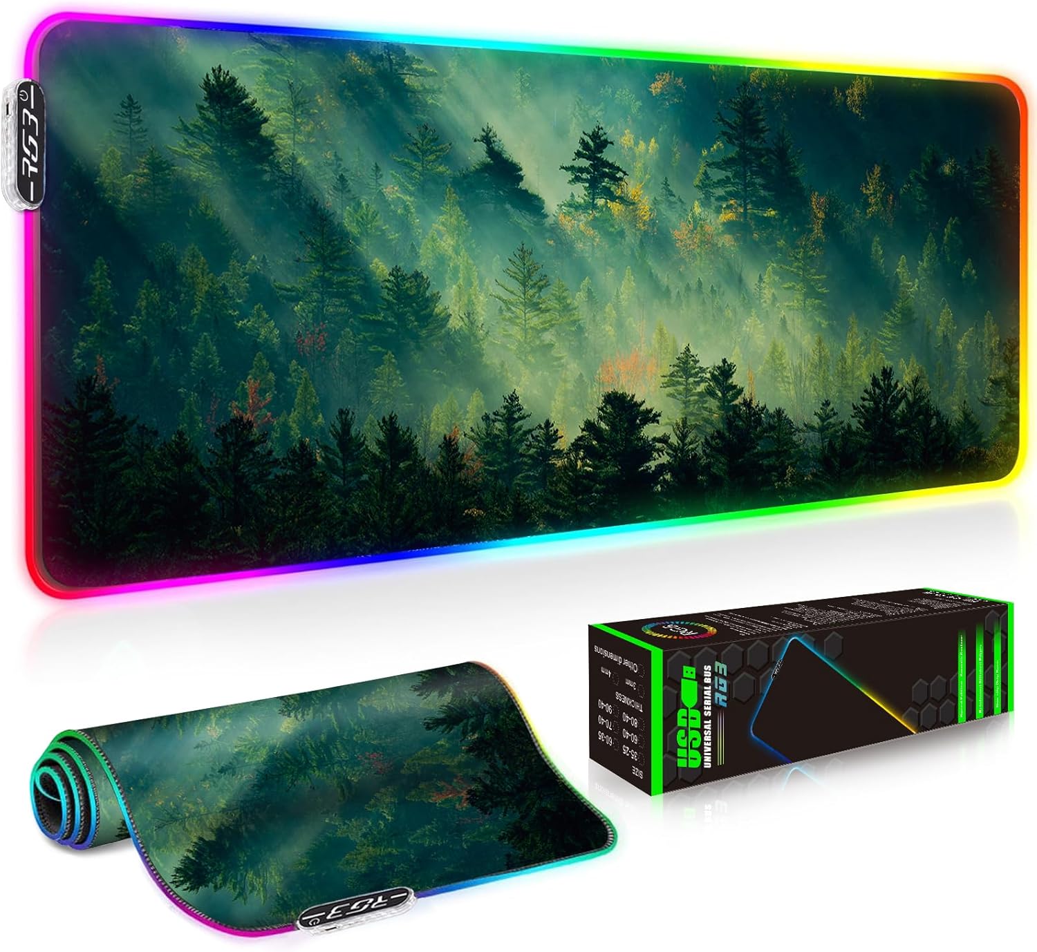 Galdas Gaming Mouse Mat Forest Background Pattern XXL XL Large Mouse Mat Long Extended Mouse Pad Desk Mat Non-Slip Rubber Mice Pads Stitched Edges Thin Pad (31.5 x 11.8 x 0.12 Inches) Tree
