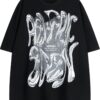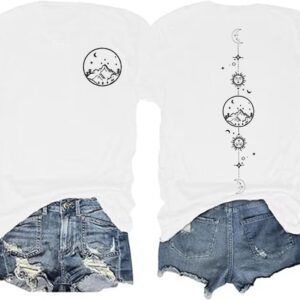 Front and Back Print Tshirt for Women Loose Casual Short Sleeve Shirt Blouses