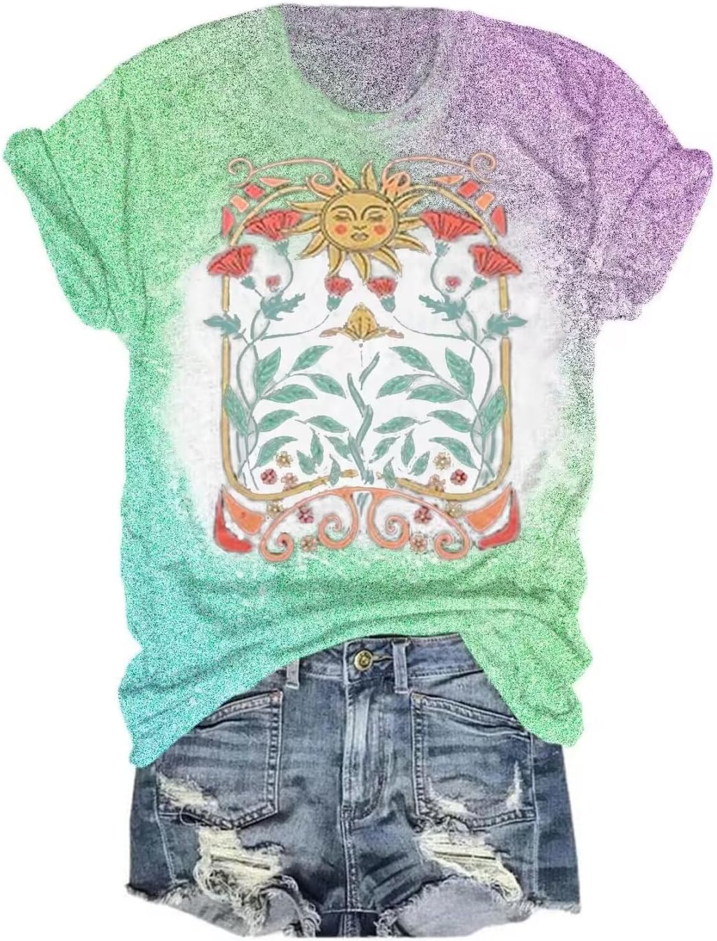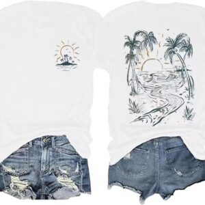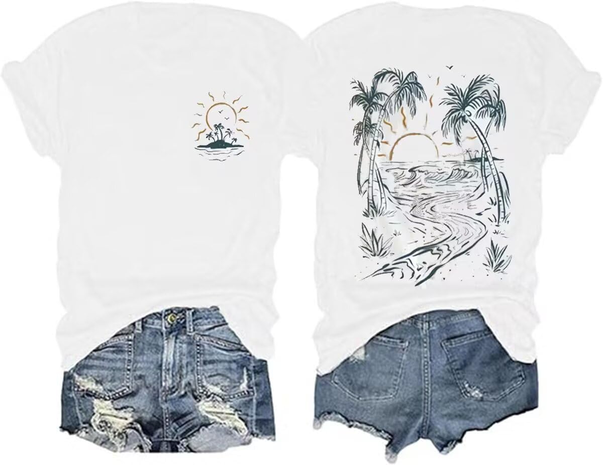 Women Graphic T Shirt Summer Short Sleeve Vacation Beach Tops
