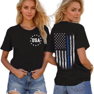 ![]() Women's American Flag Thin Blue Line T-Shirt