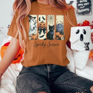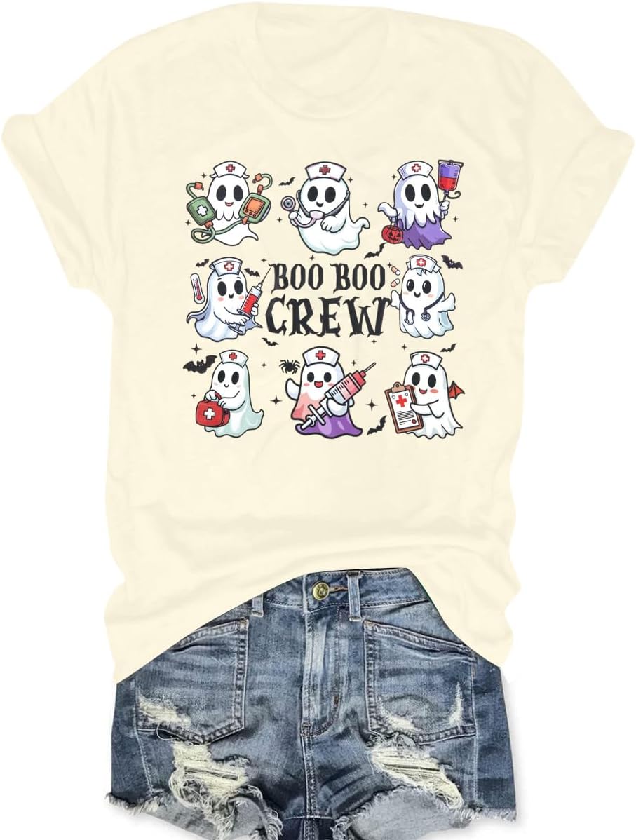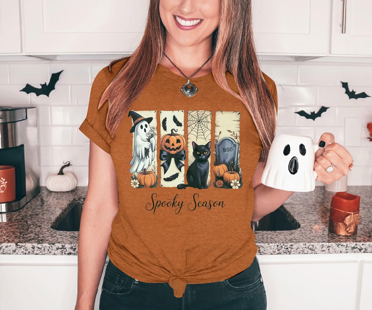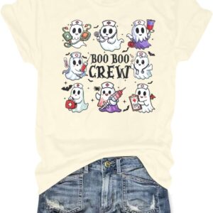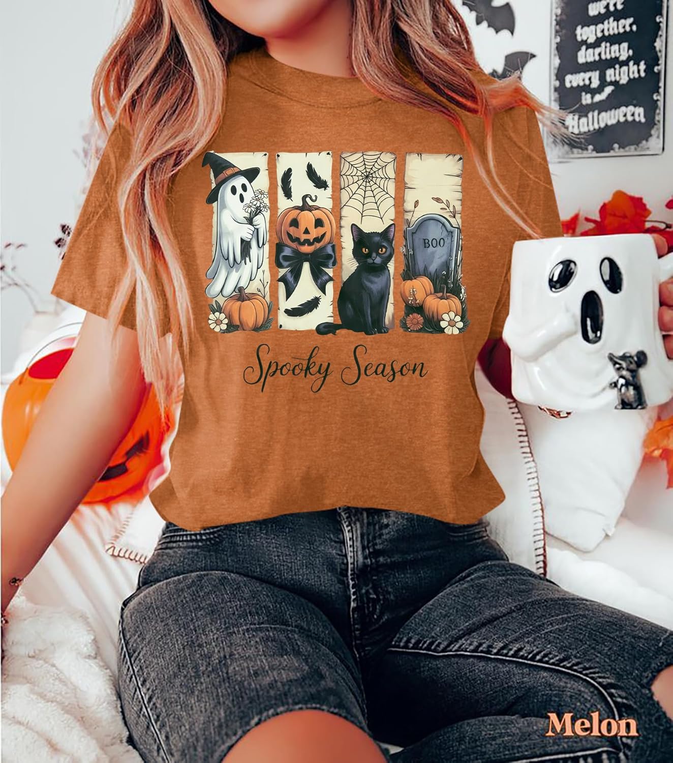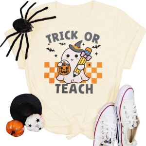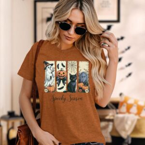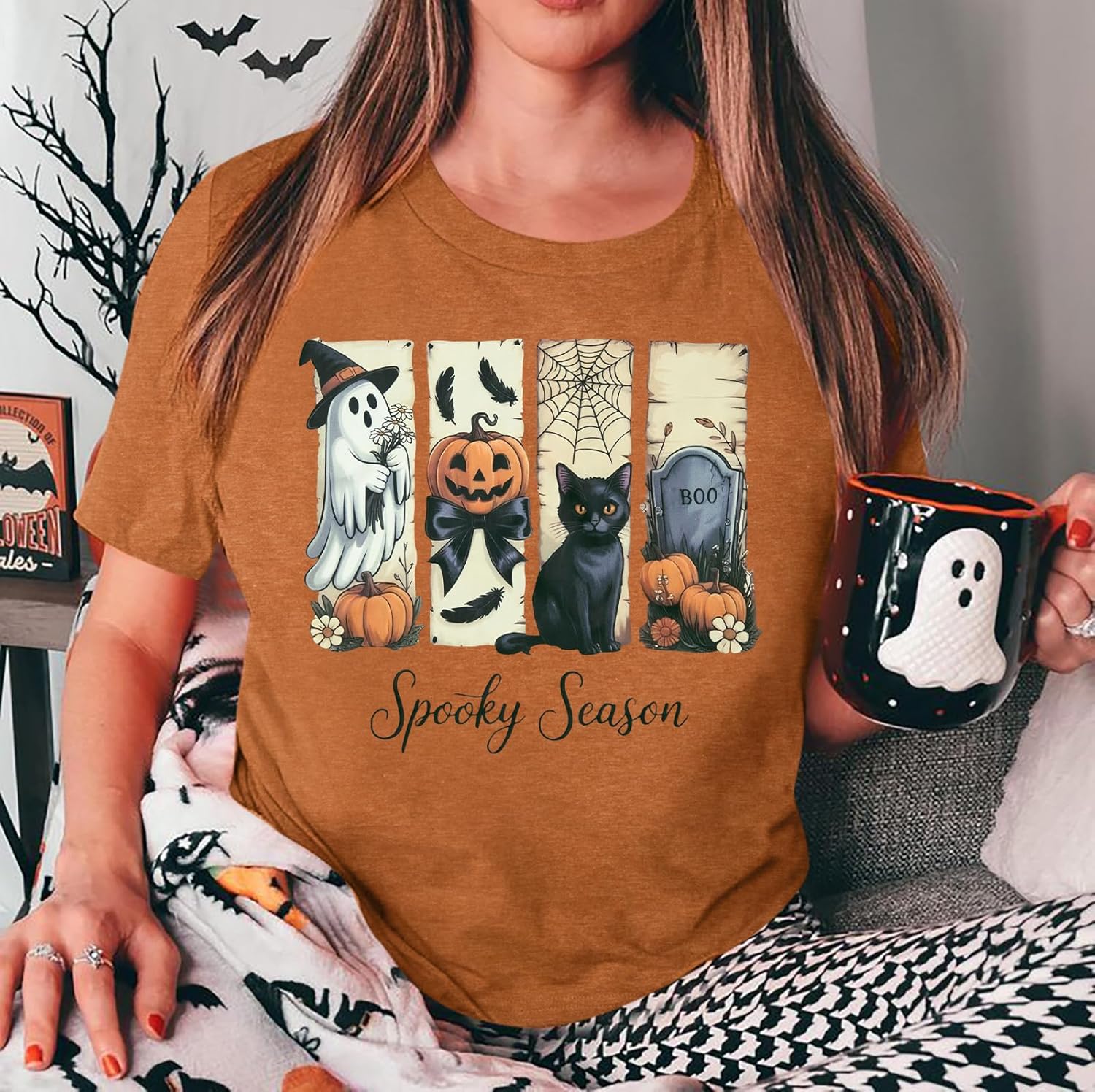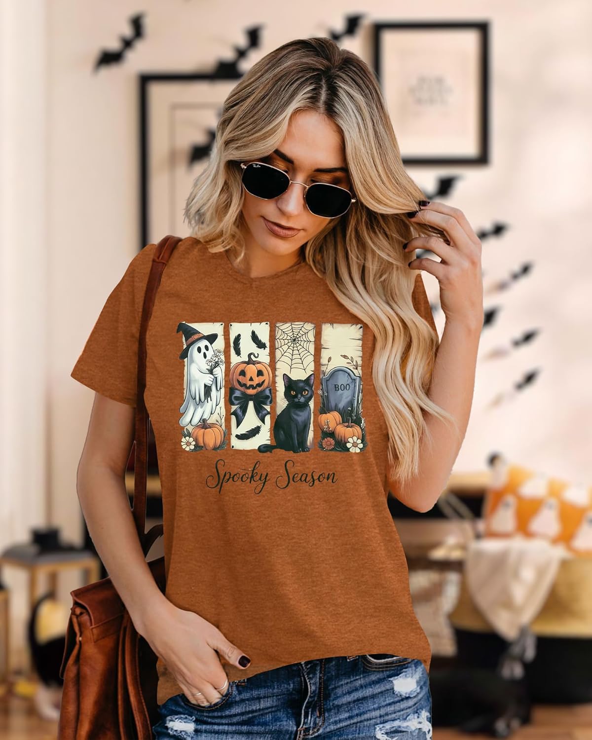 Halloween Teacher Shirts for Women Reading Books T-Shirt Funny Spooky Bookish Tee Halloween Short Sleeve Tops