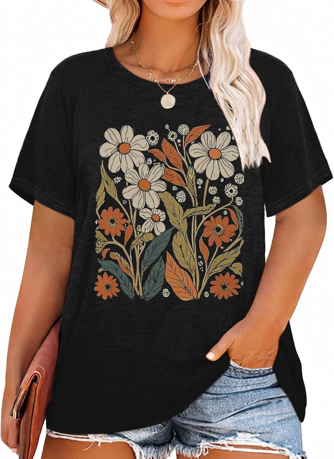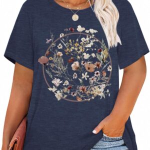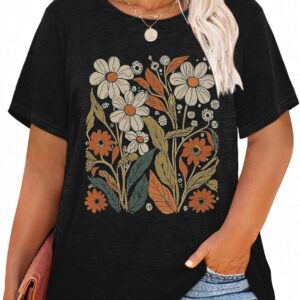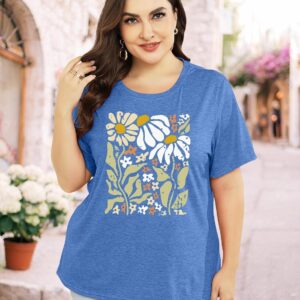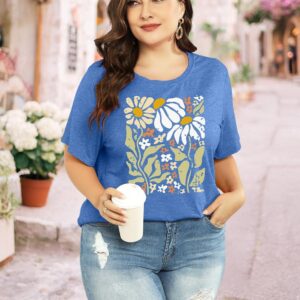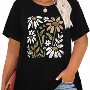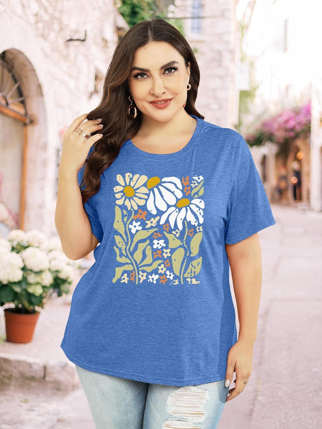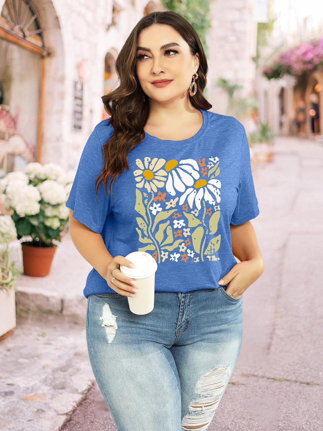 Faith Shirs for Plus Size Women Short Sleeve Daisy Flowers Graphic O Neck Cute Tee