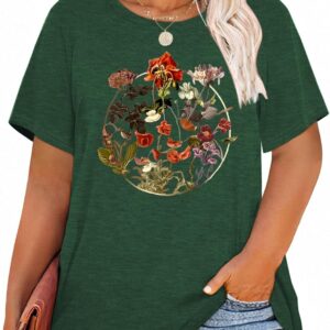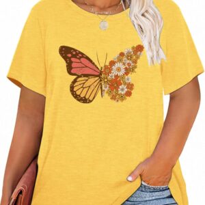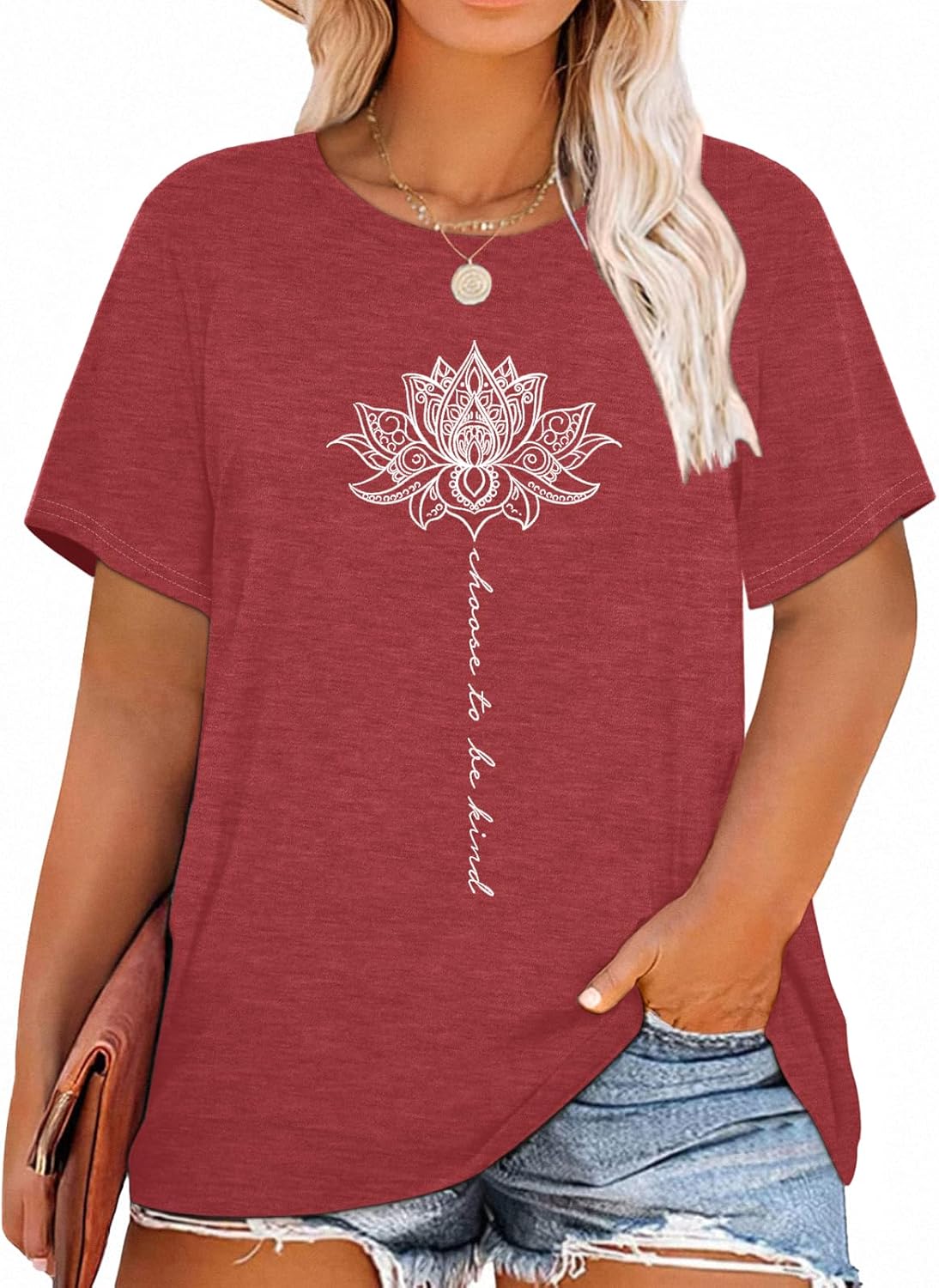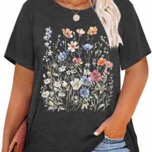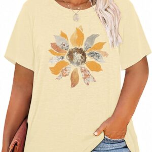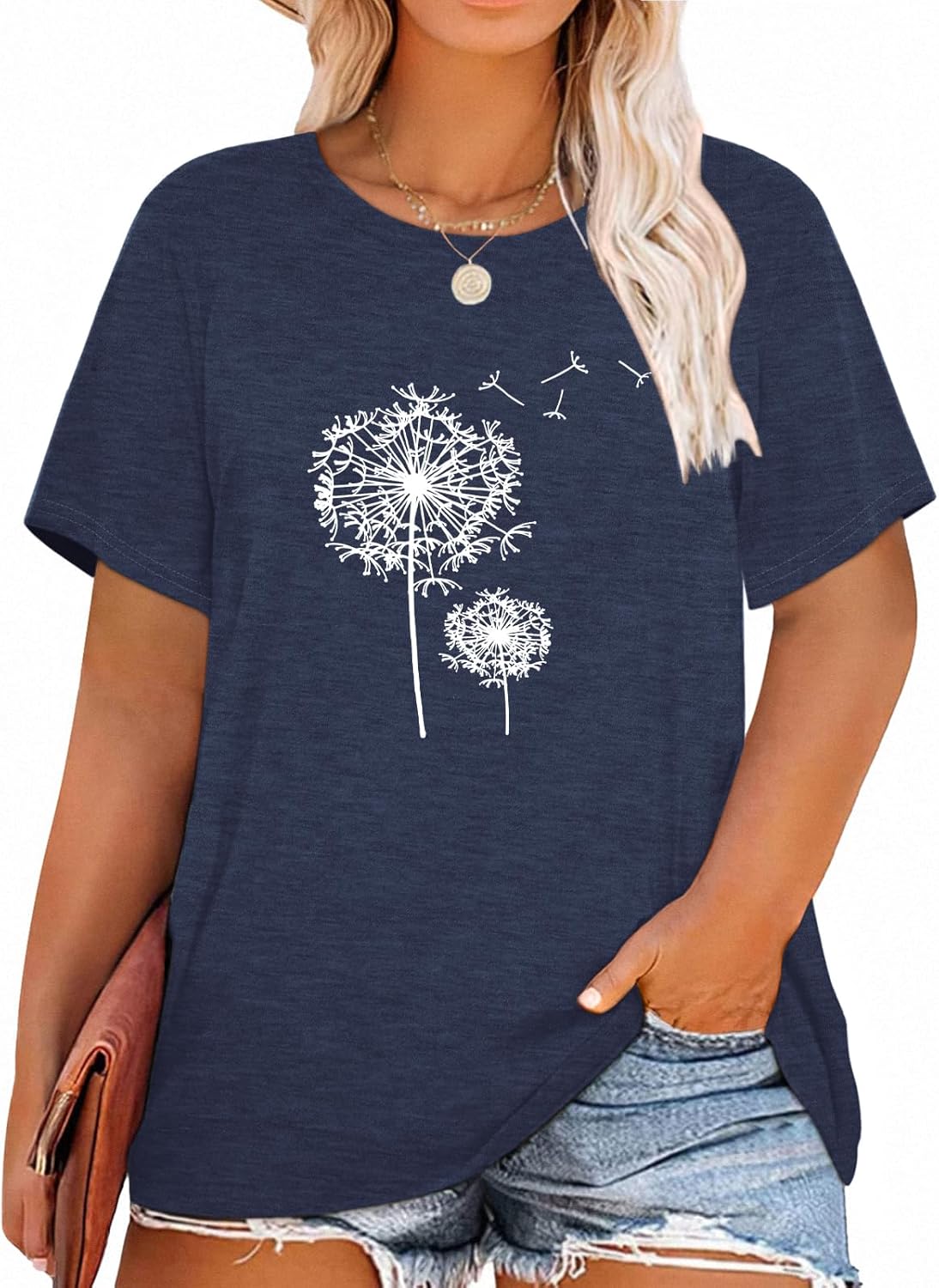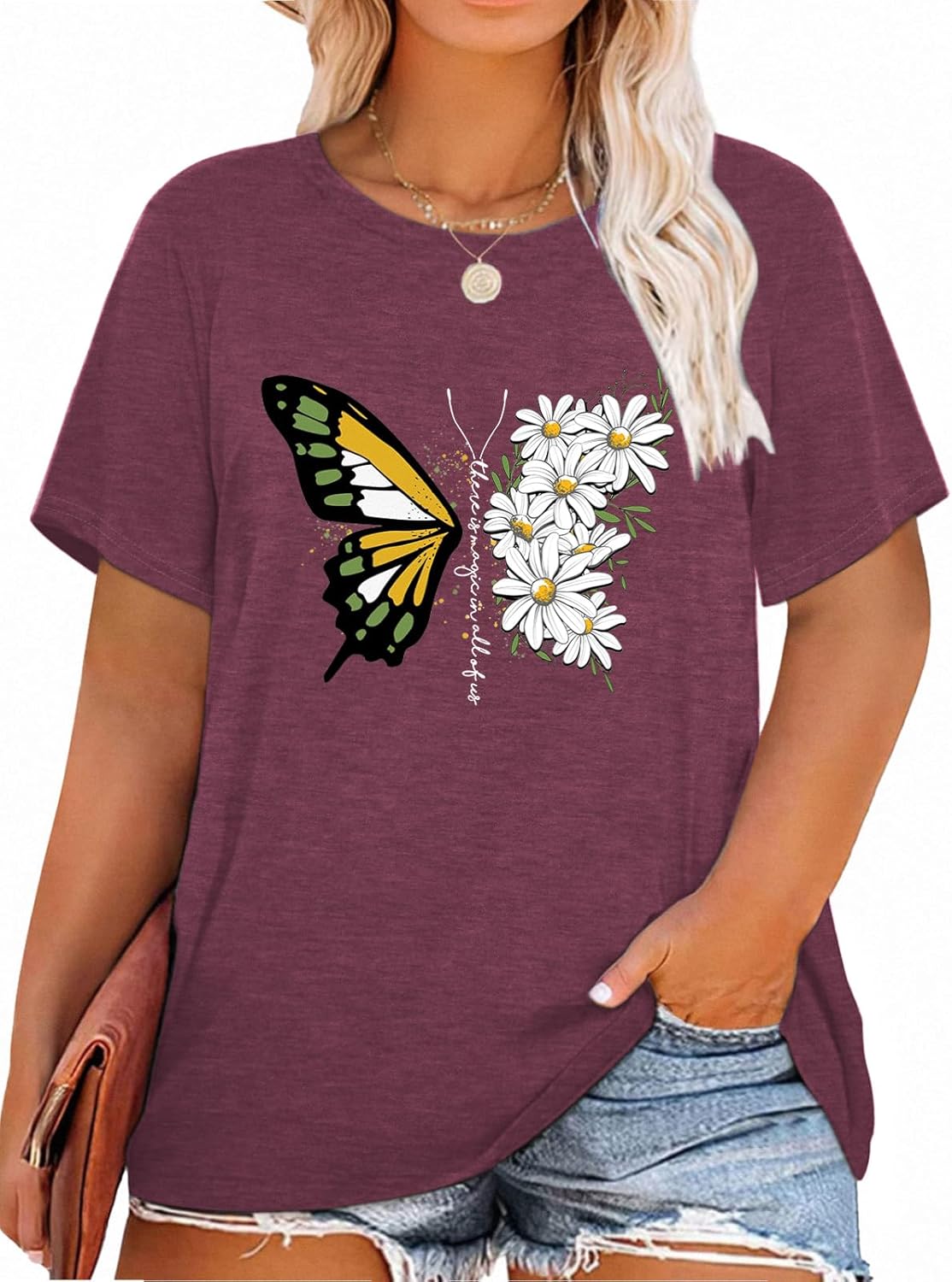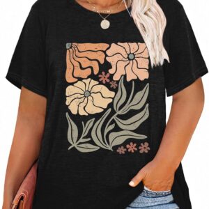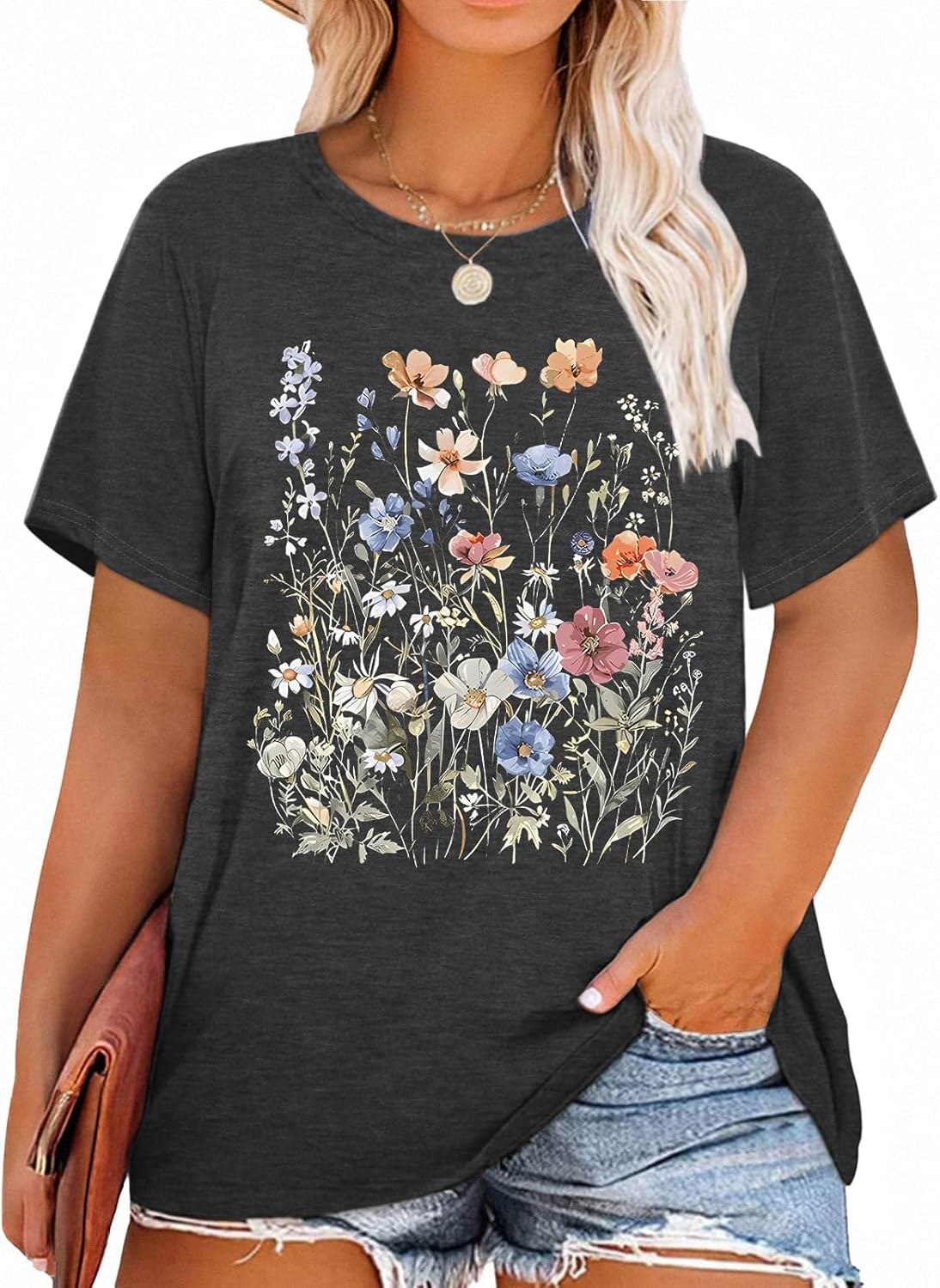 Faith Shirs for Plus Size Women Short Sleeve Daisy Flowers Graphic O Neck Cute Tee