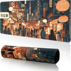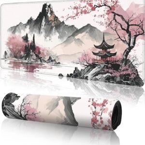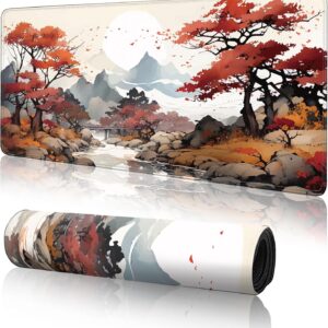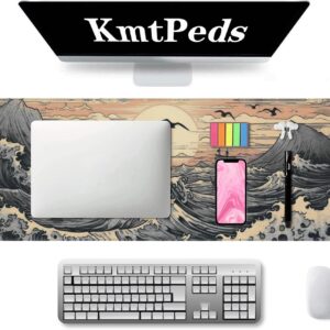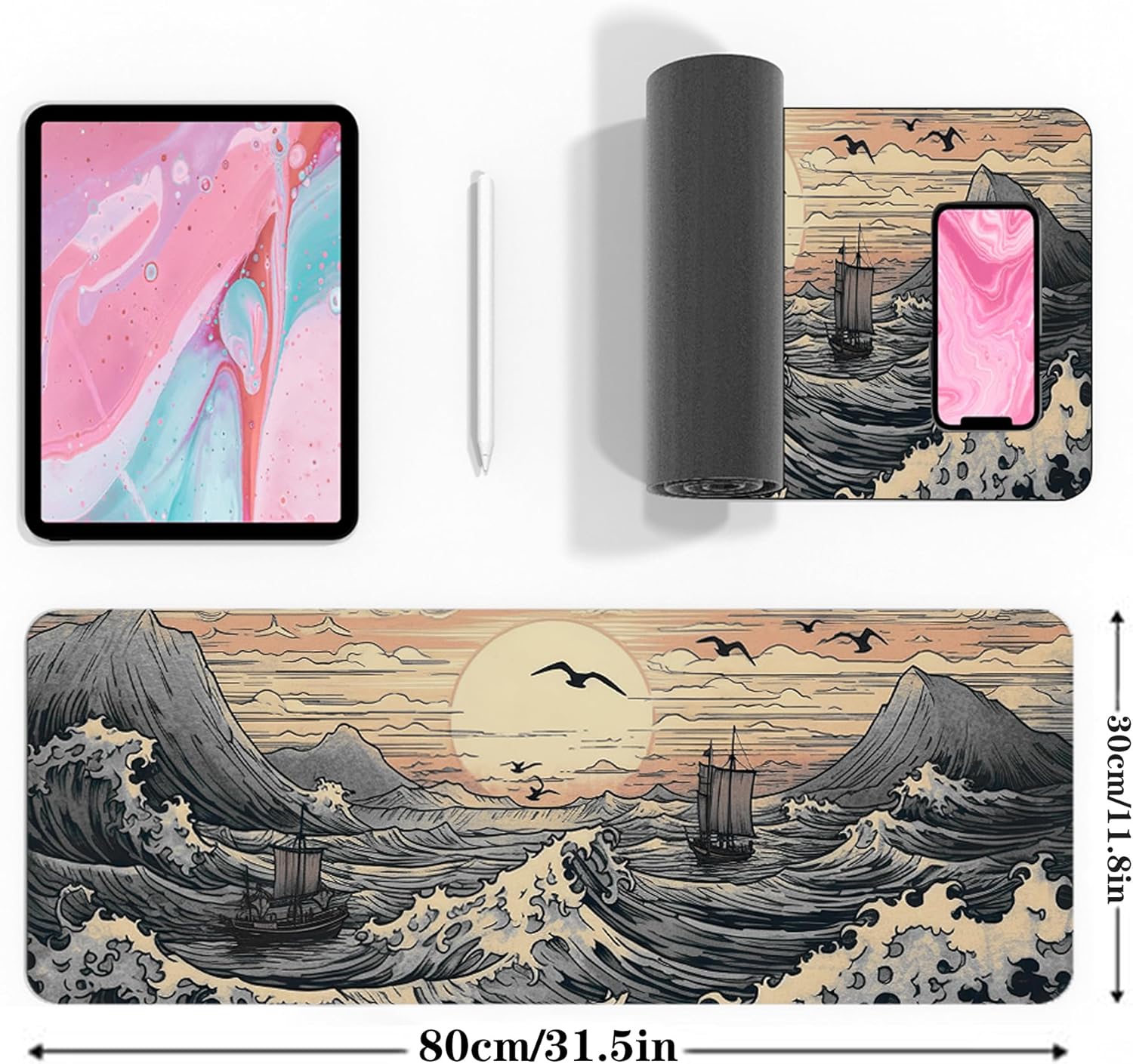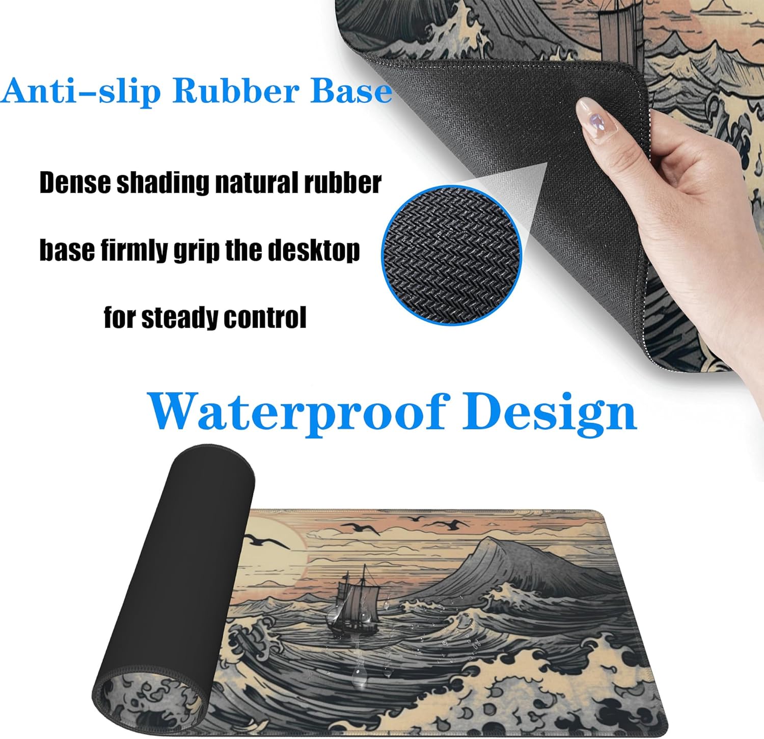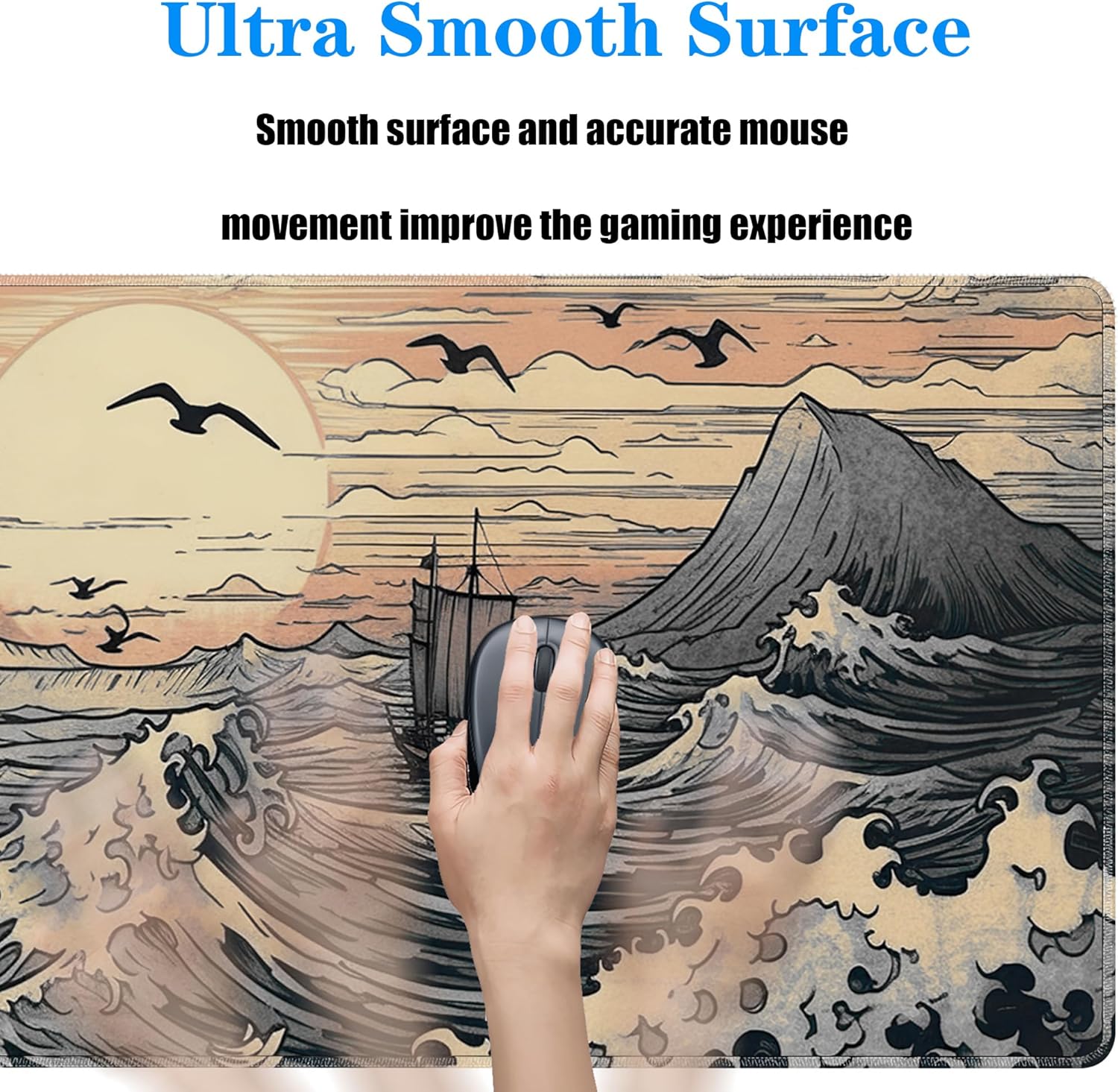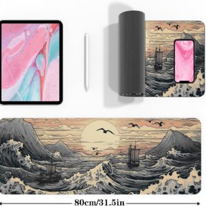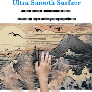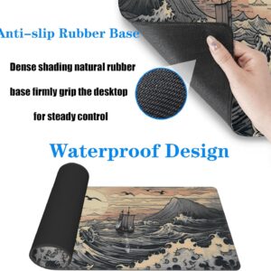 Japanese Sea Waves Large Gaming Mouse Pad,XL Mouse Pad Gaming Mouse Mat Desk Pad,31.5 x 11.8in Desk Mat Anime Mouse Pads for Desk,Extended Keyboard Pad Mousepad with Non-Slip Base and Stitched Edge