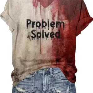 - Feature:Womens Halloween Novelty shirts Basic Witch Halloween T Shirt For Women ,Funny I’m Fine Problem Solved Blood Horror Print,Short Sleeve,Casual,family party T-shirt