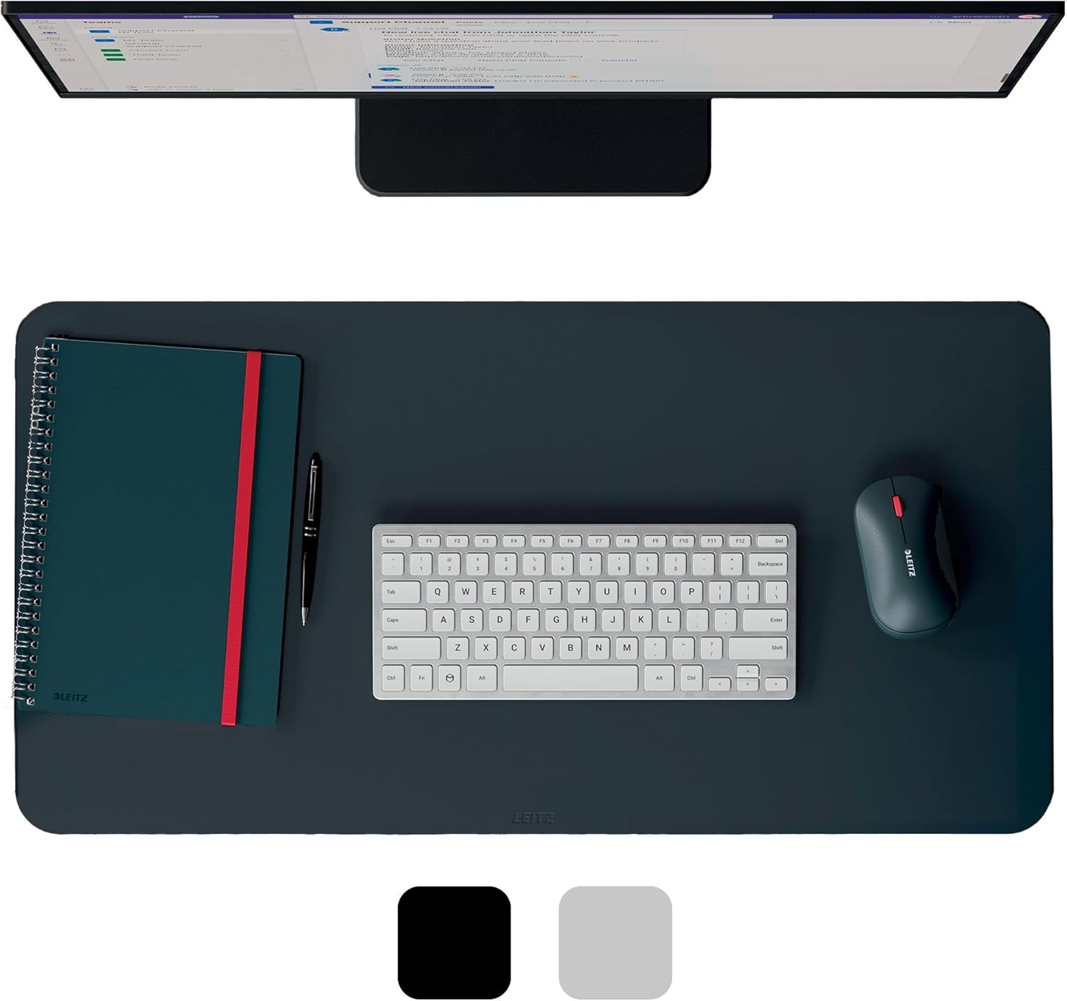 Leitz Large Leather Desk Mat – Recycled Leather Desk Pad, Non-Slip Mat, Premium Writing Pad, Keyboard & Mouse Mat, Laptop Desk Protector for Office & Home, Blotter, Eco-Friendly (70x36cm, Dark Grey)