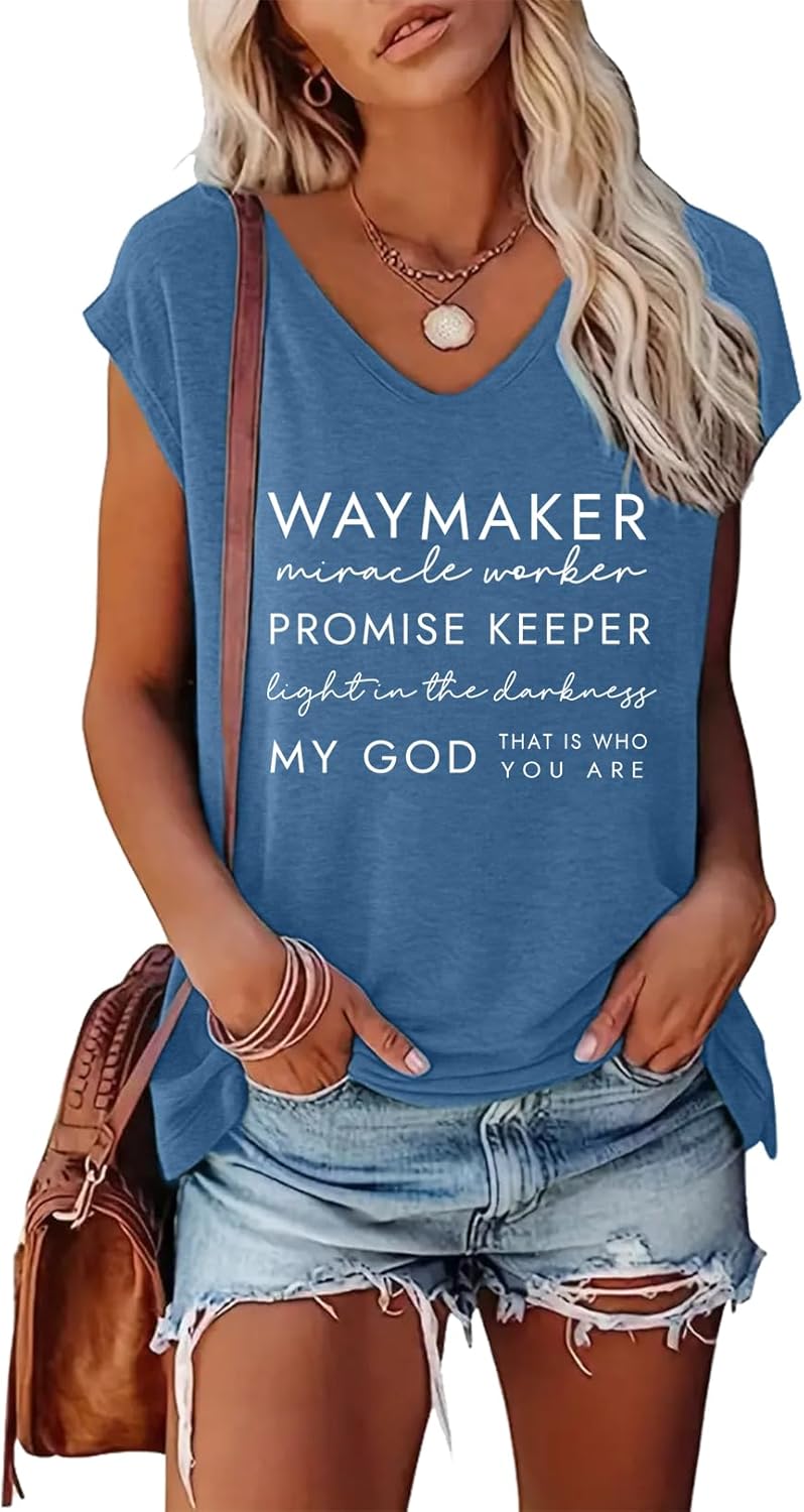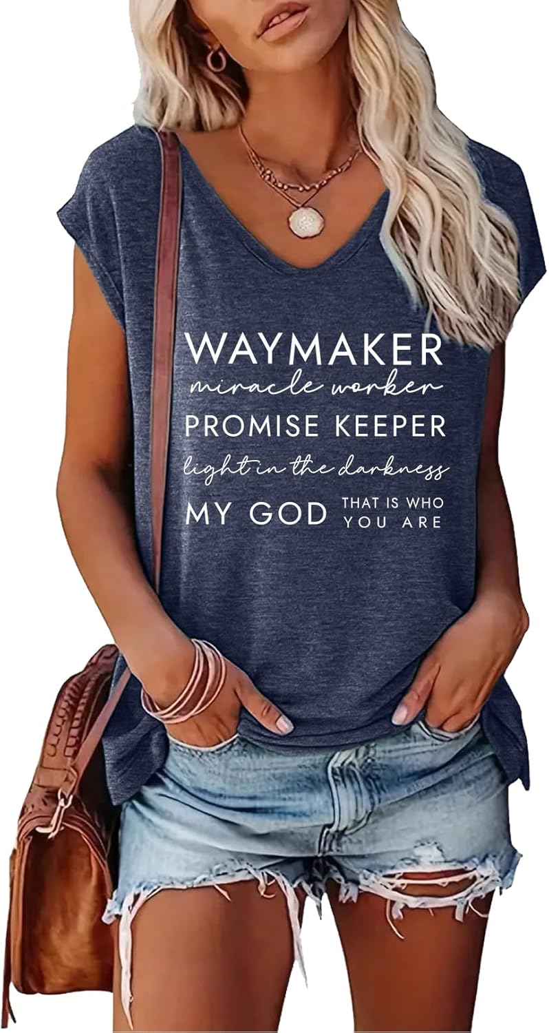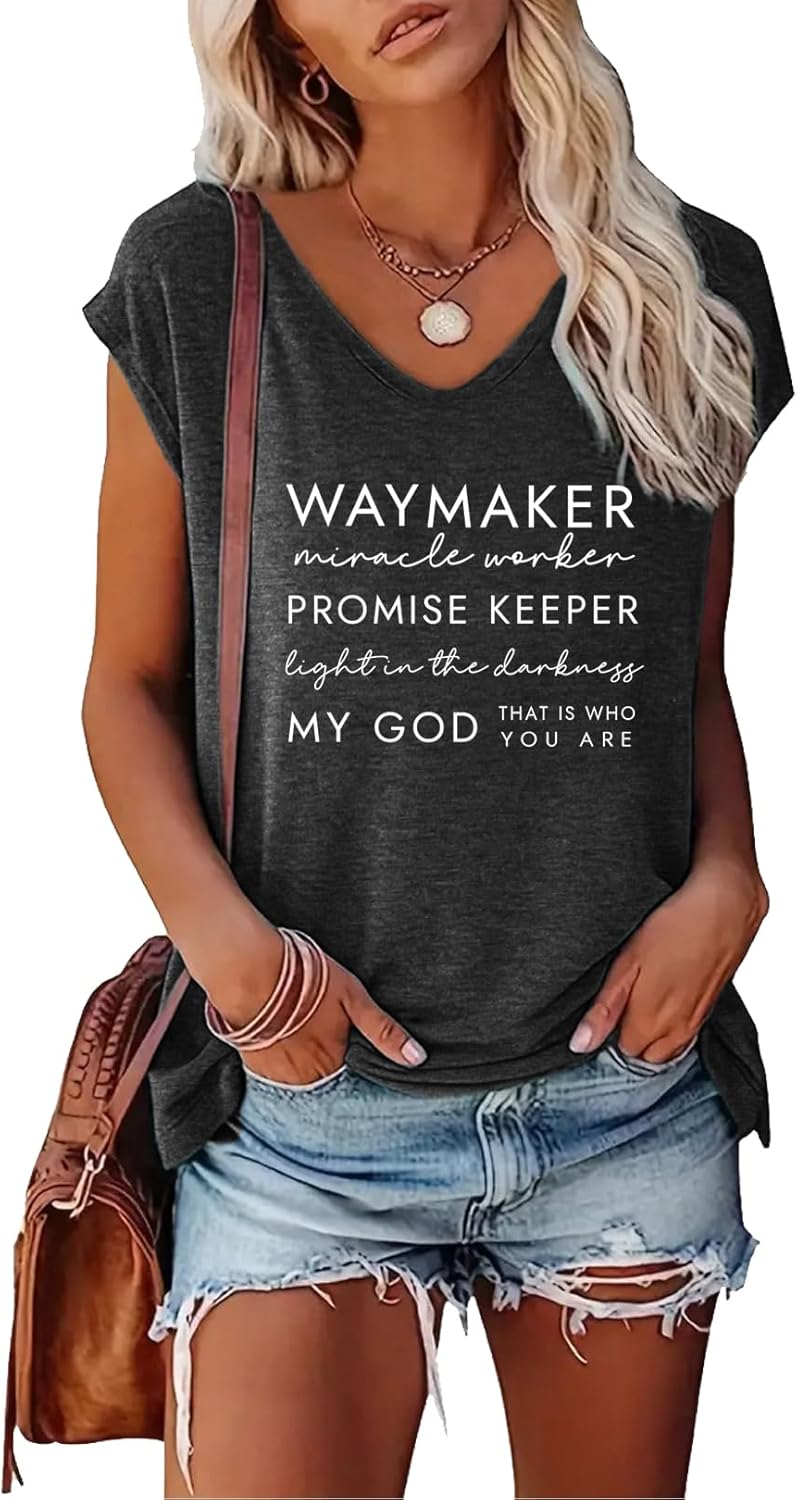 LOOKFACE Women’s V-Neck Cap Sleeve Tees T-Shirt Graphic Tops