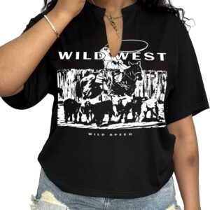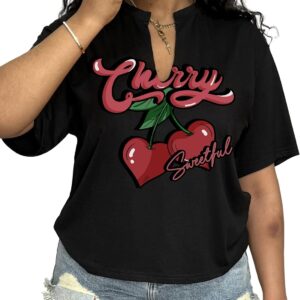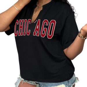 - FEATURES: Womens short sleeve t shirts features a sexy v neck, solid color, cute Chicago printed and casual loose fit. Basic tunic shirt, drop shoulder longline tee, boyfriend style and low cut design.