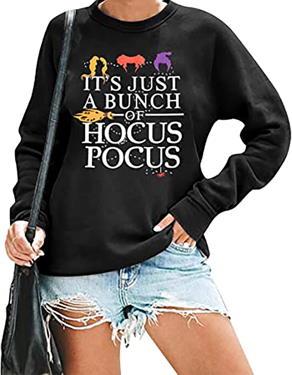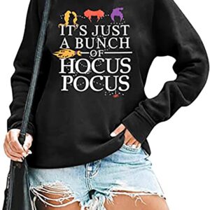 LYEIAO It’s Just A Bunch of Hocus Pocus Halloween Sweatshirt Women Funny Spooky Season Graphic Long Sleeve Tee Tops