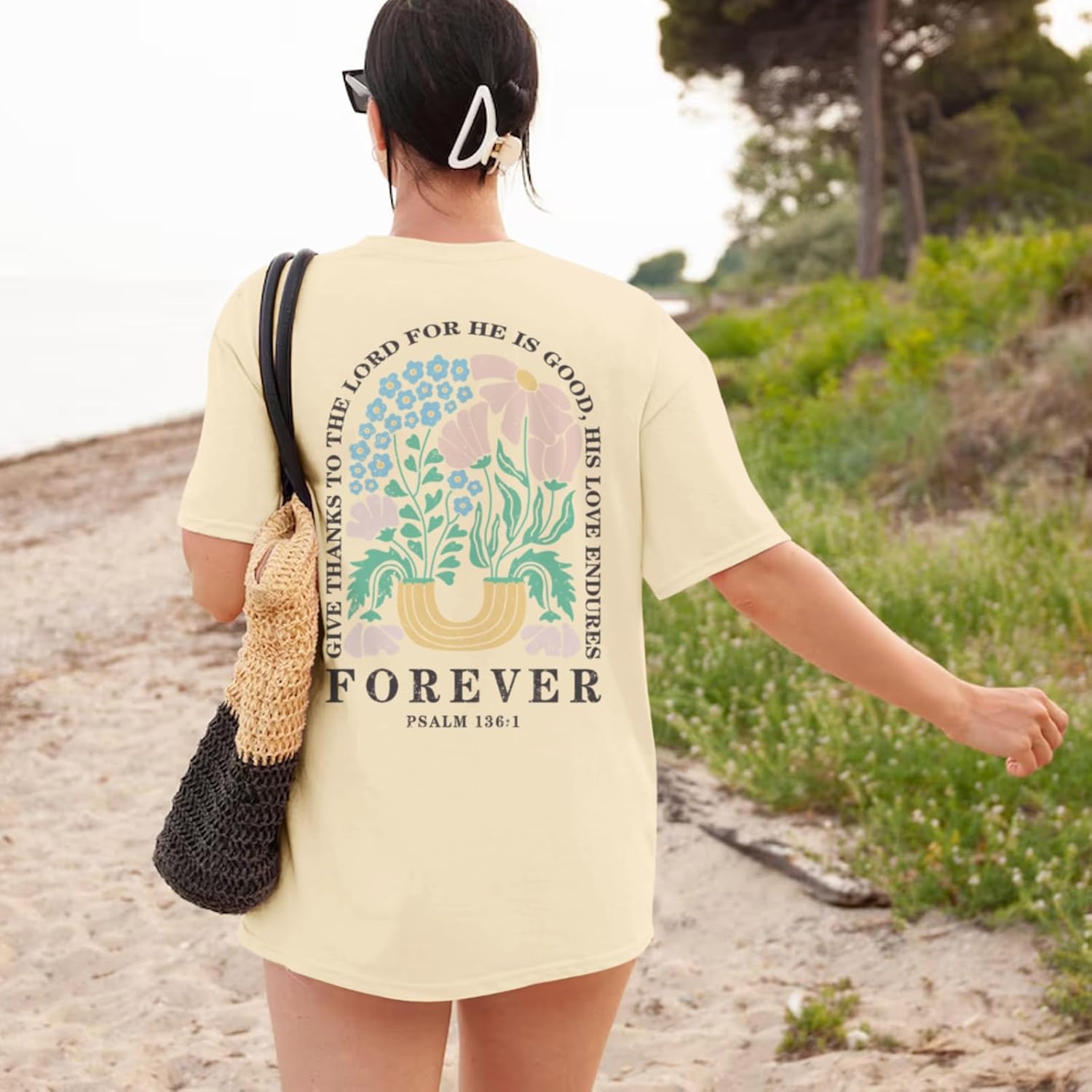 Religious Bible Verse Shirts Inspirational Floral Oversized Graphic Tees