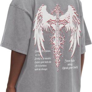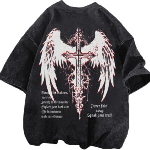 Gothic Cross Y2k Graphic Tees Acid Wash T Shirt