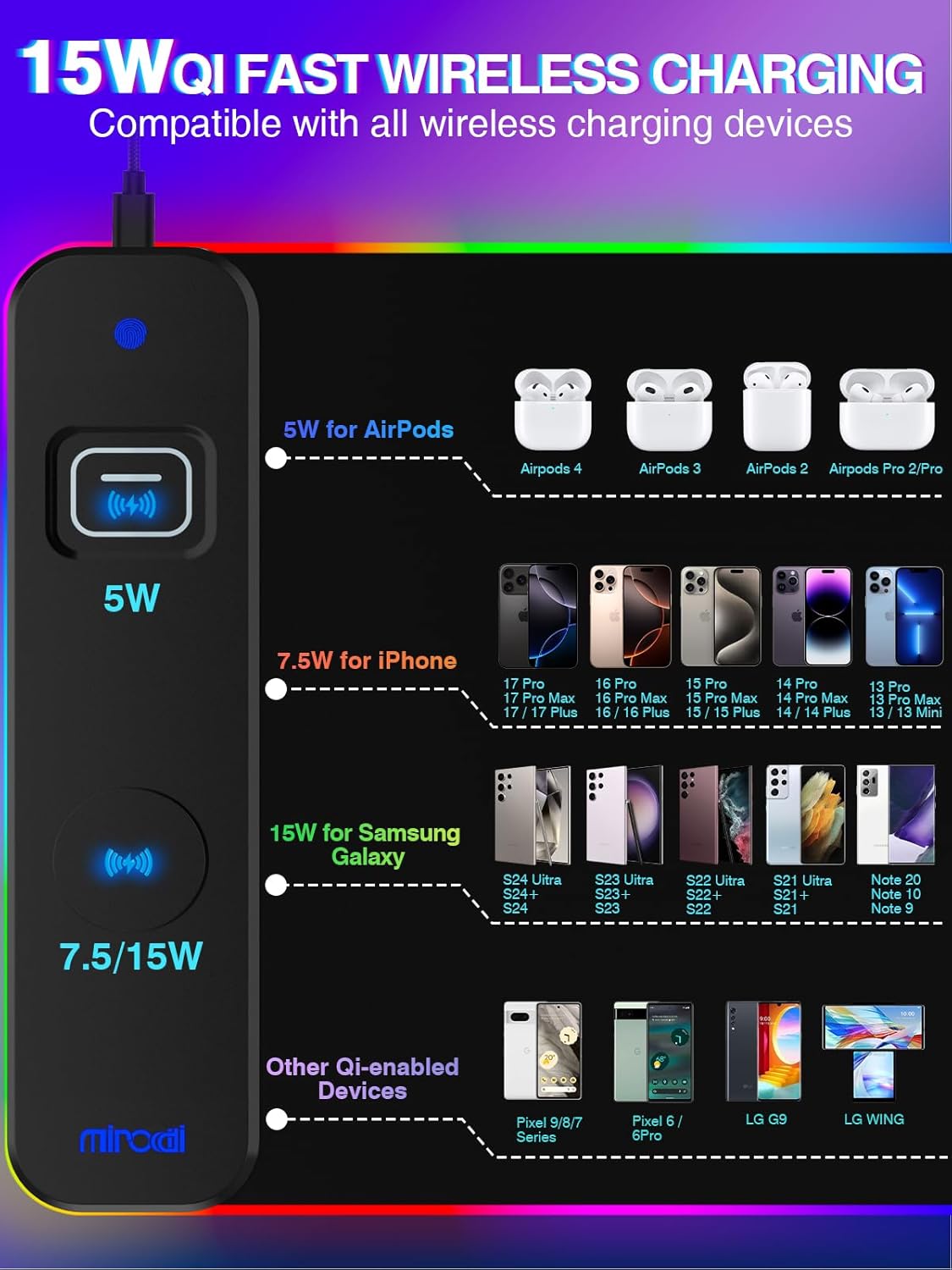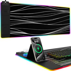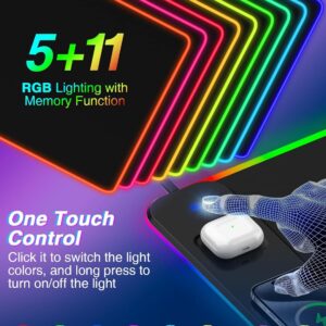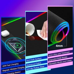 Magnetic RGB Gaming Mouse Pad 31.5×15.75 Inch, 15W Fast Wireless Charging Desk Mat, XXL Desk Pad with 11 RGB Lighting Modes, Home Office Large Keyboard Pad with Ultra-Smooth Surface, Non-Slip Base