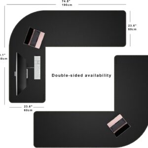 - Oversized L Shaped Desk Mat : Measuring 59" x 75" x 23.6" (150 x 190 x60 cm), this l shaped desk mouse pad provides expansive space to accommodate laptops, monitors, keyboards, mice, wrist rests, notebooks, phone stands, pen holders, and cups, it delivers a soft, cushioned surface with just the right