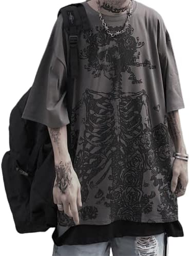Men Women Y2K Gothic Skeleton T-Shirt Grunge Dark Academia Emo Tees Japanese Alt Harajuku Oversize Punk Skull Clothes