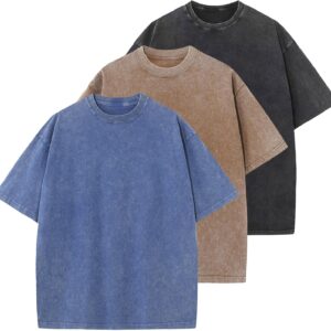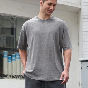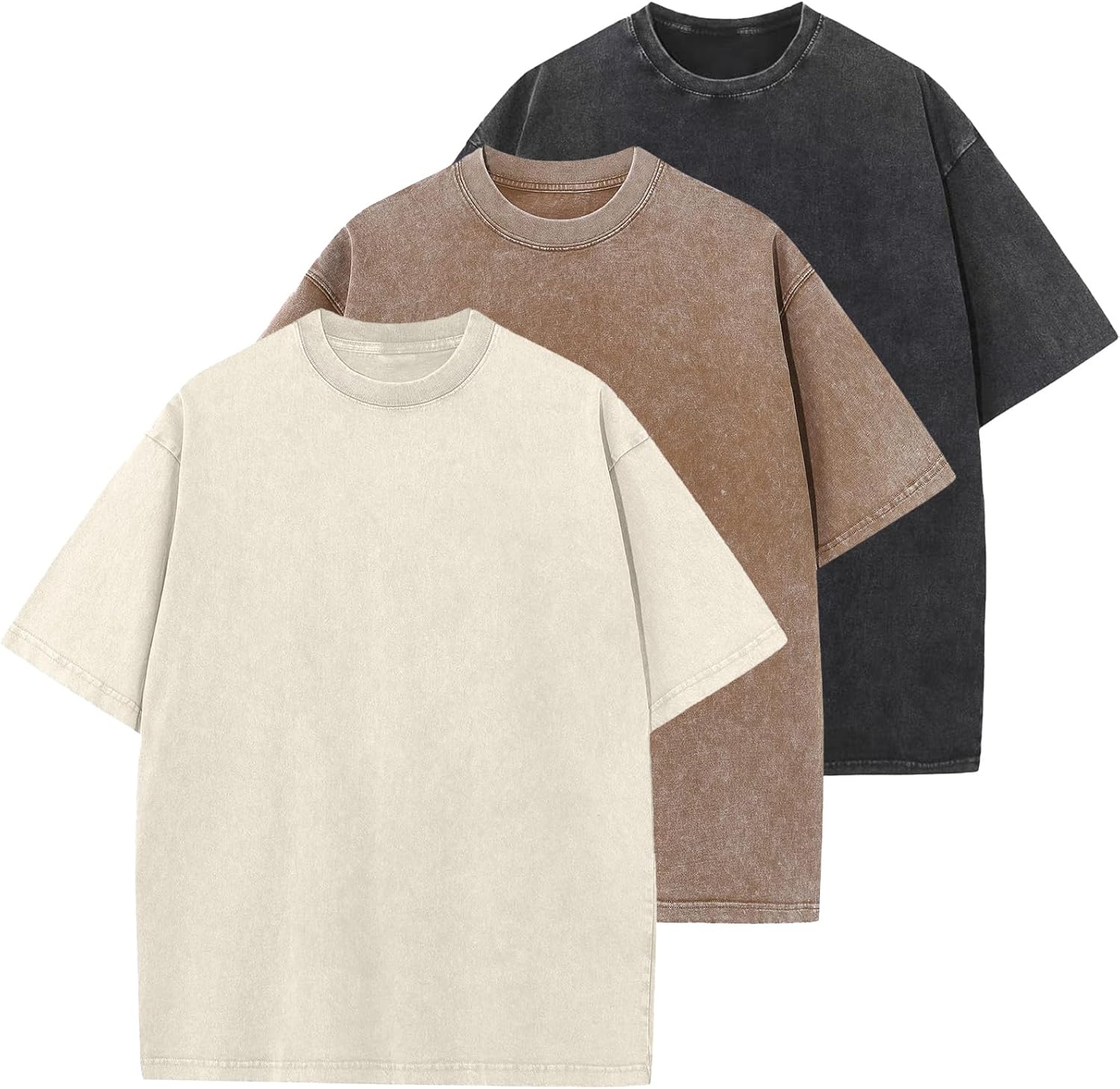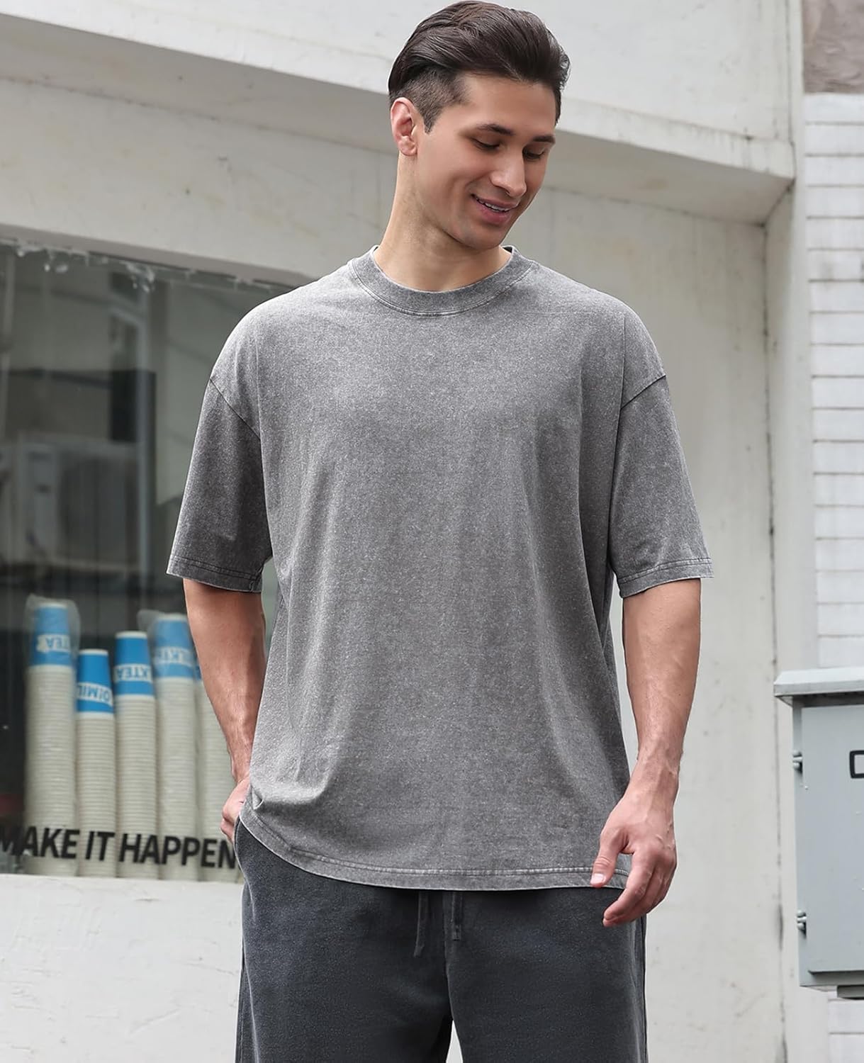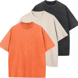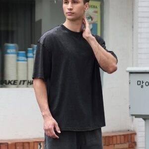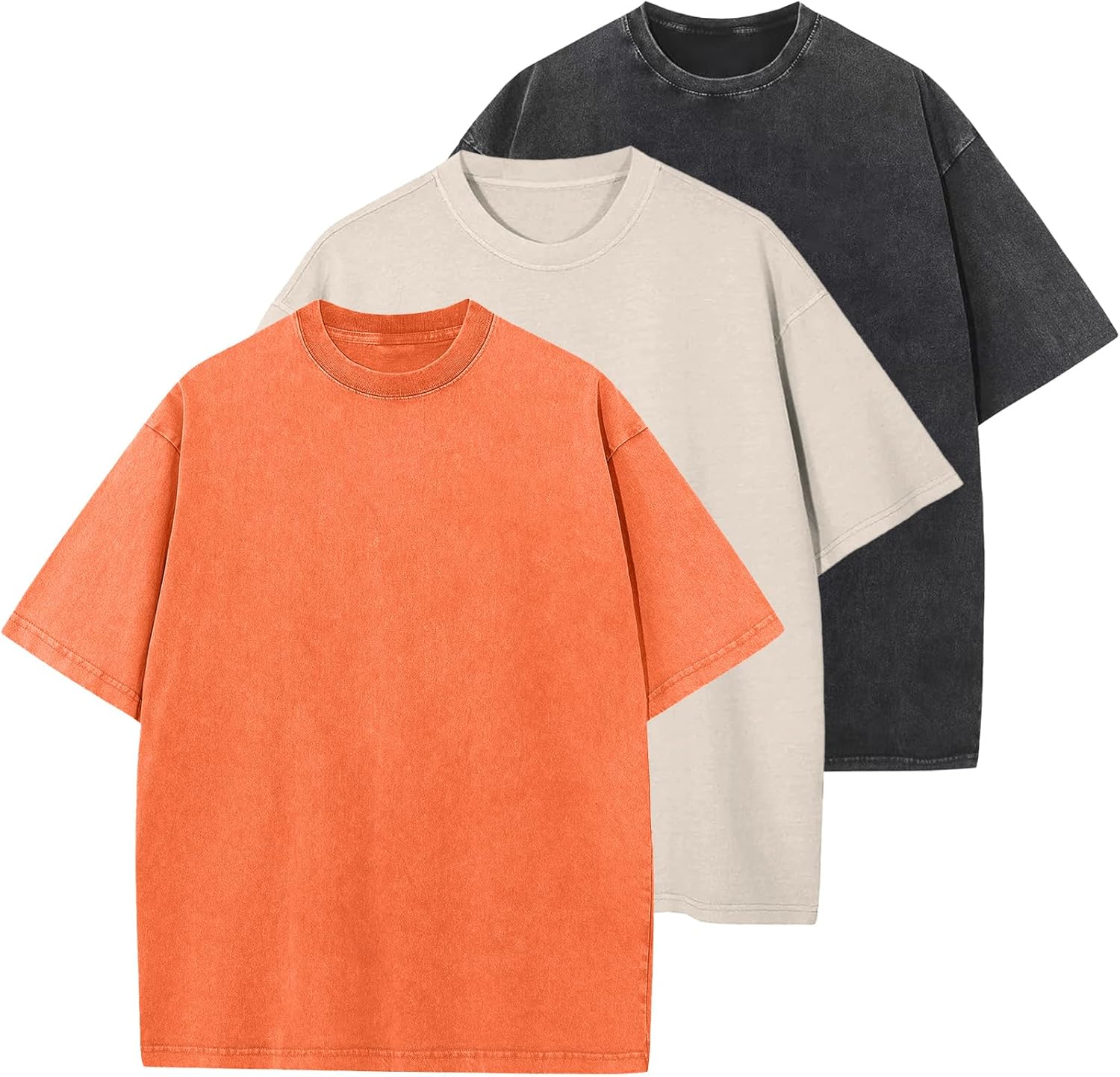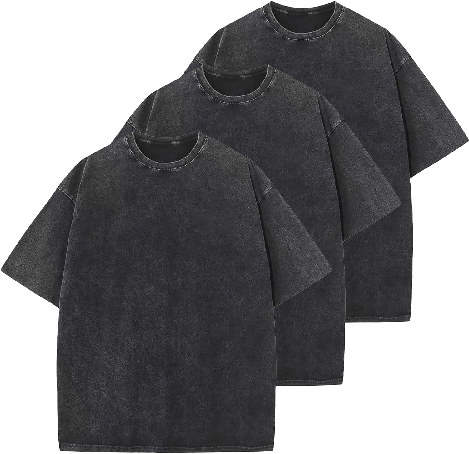 Men's Cotton T-Shirts Oversized Unisex Short Sleeves Casual Loose Wash Solid Basic Tee Tops quantity