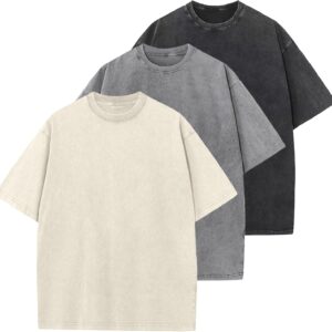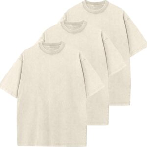 Men’s Cotton T-Shirts Oversized Unisex Short Sleeves Casual Loose Wash Solid Basic Tee Tops