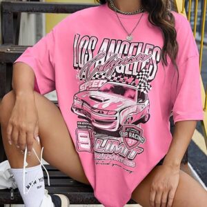 - Short sleeve, graphic letters printed, crew neck, Oversized T Shirt .