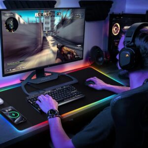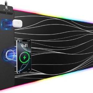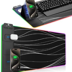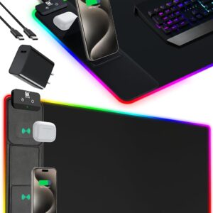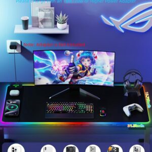 Mouse Pad with 15W Magnetic Wireless Charging 31.5×15.75 Inch, RGB Mousepad for Desk Mat, XXL Desk Pad with 11 Colors & 5 Modes, Home Office Large Keyboard Pad Waterproof Non-Slip for Gaming PC Setup
