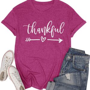 NIUBIA Women’s T Shirts Summer Tops Simple Heart Graphic Shirts Sayings Short Sleeve Vacation Casual Blouse Thankful Tee