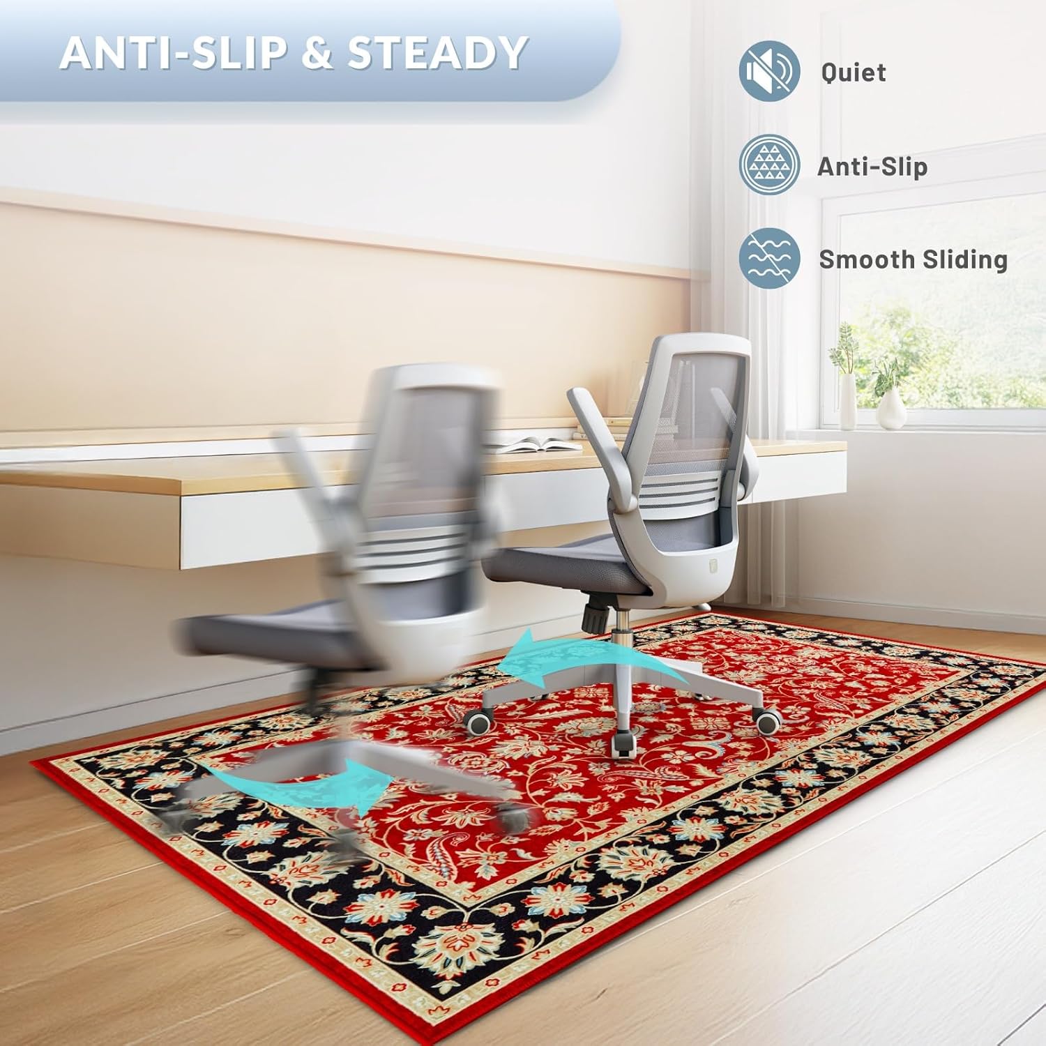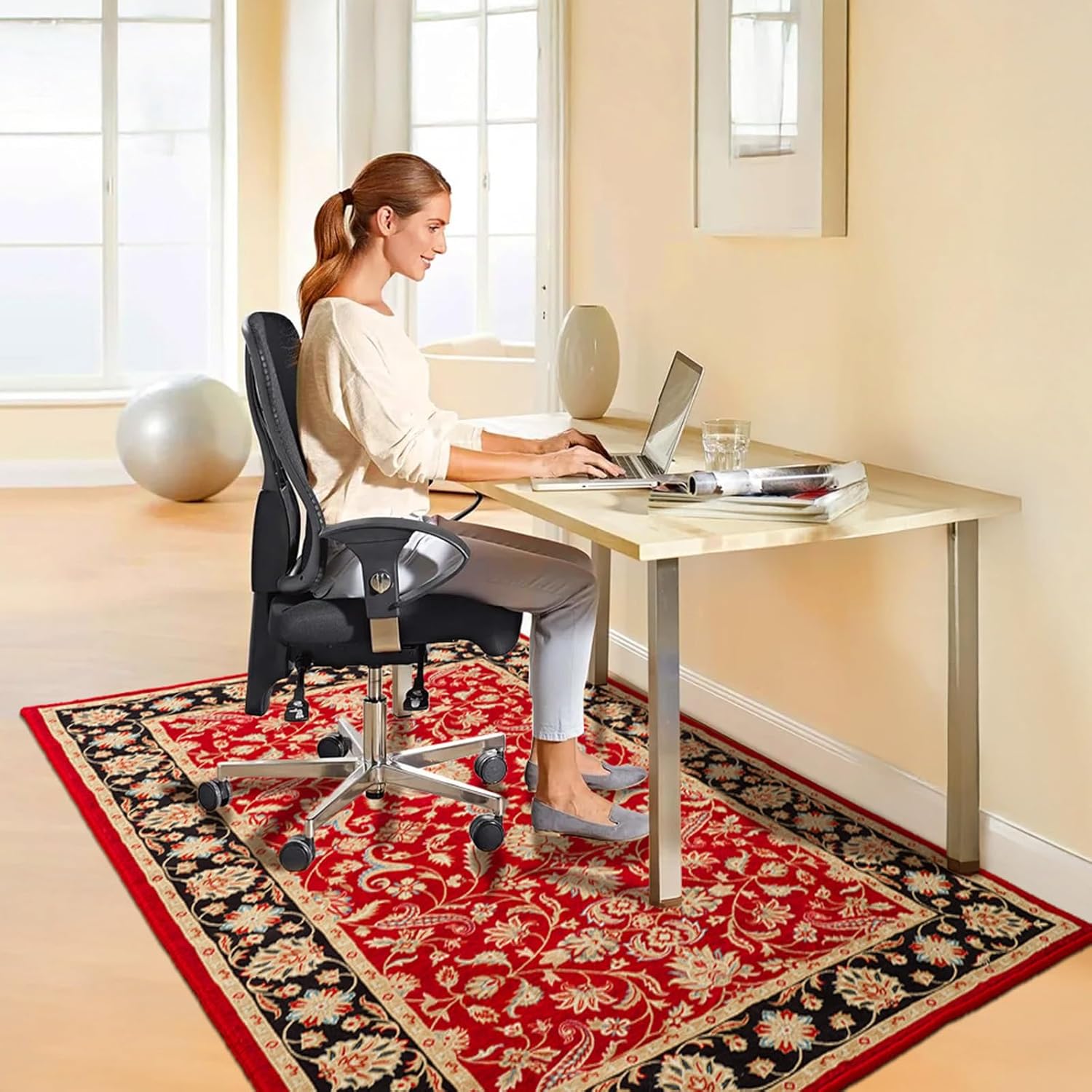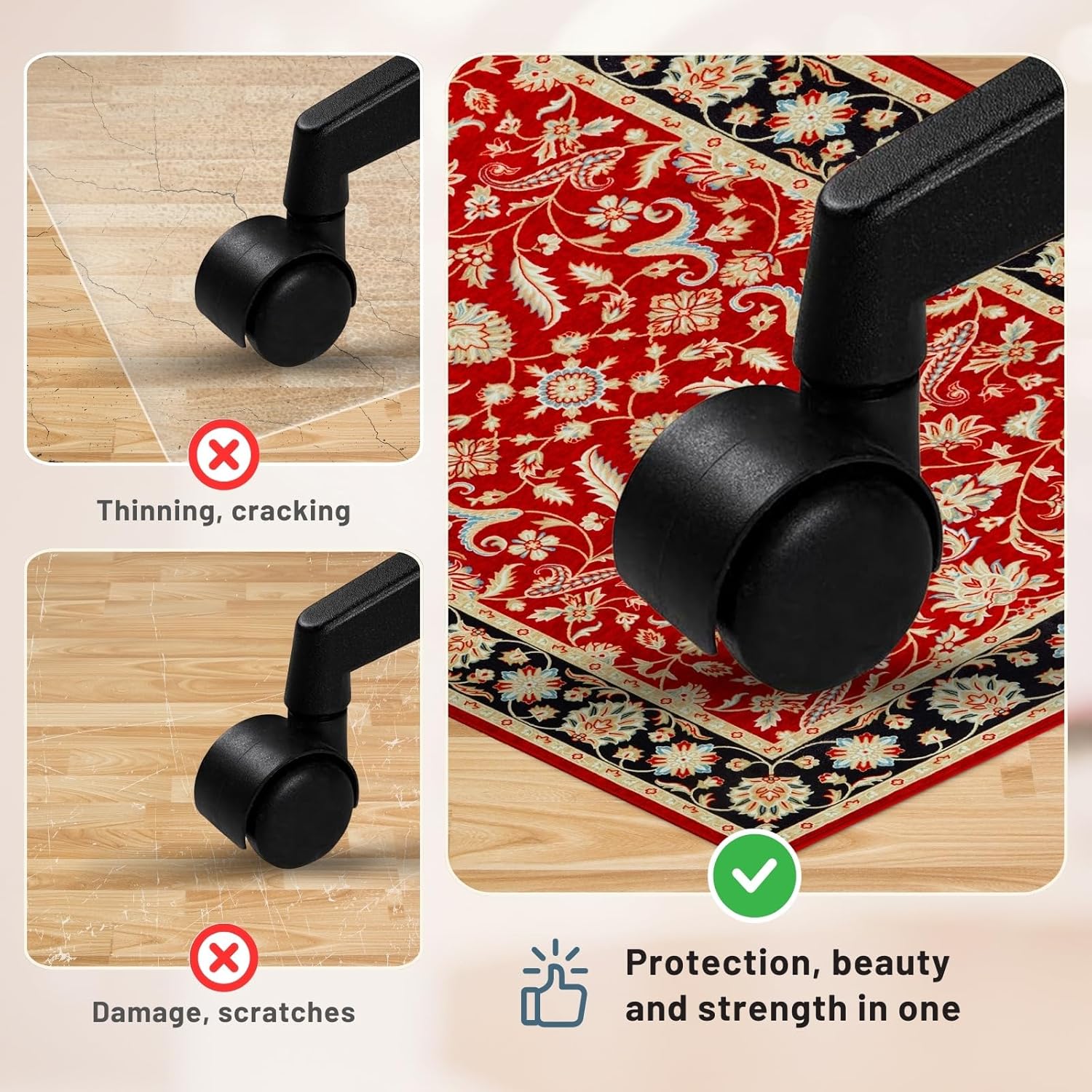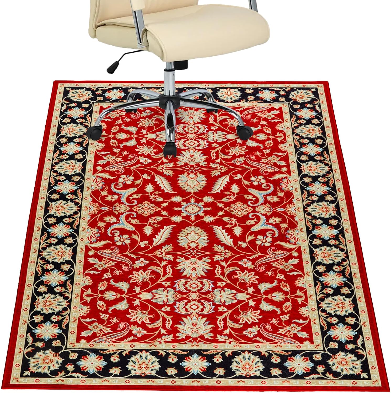 Office Chair Mat, Gsmmatwin 48″x60″ (4mm) Red Flower Chair Mat, Anti-Slip Under Desk Chair Carpet for Hardwood Floor, Foldable and Machine Washable Under Desk Rug for Office Home