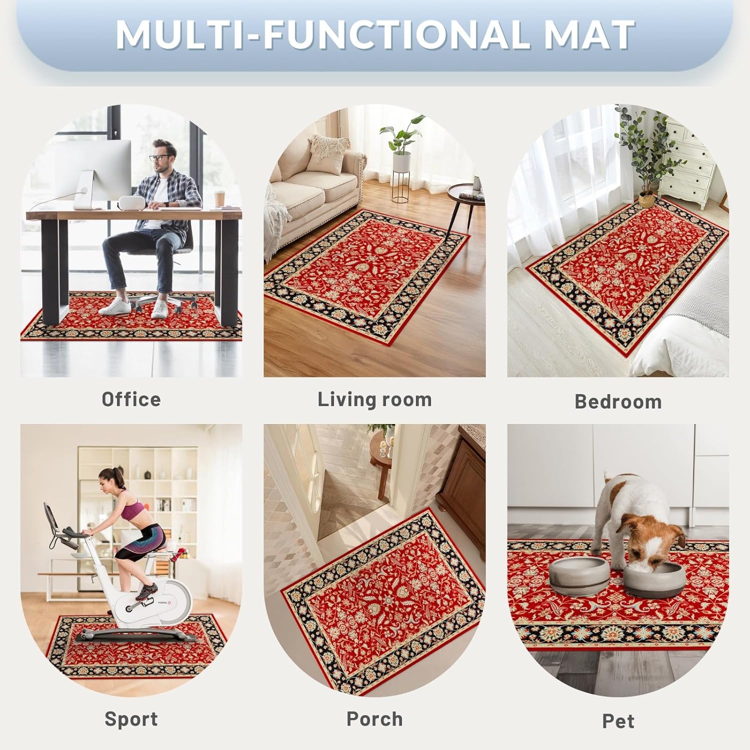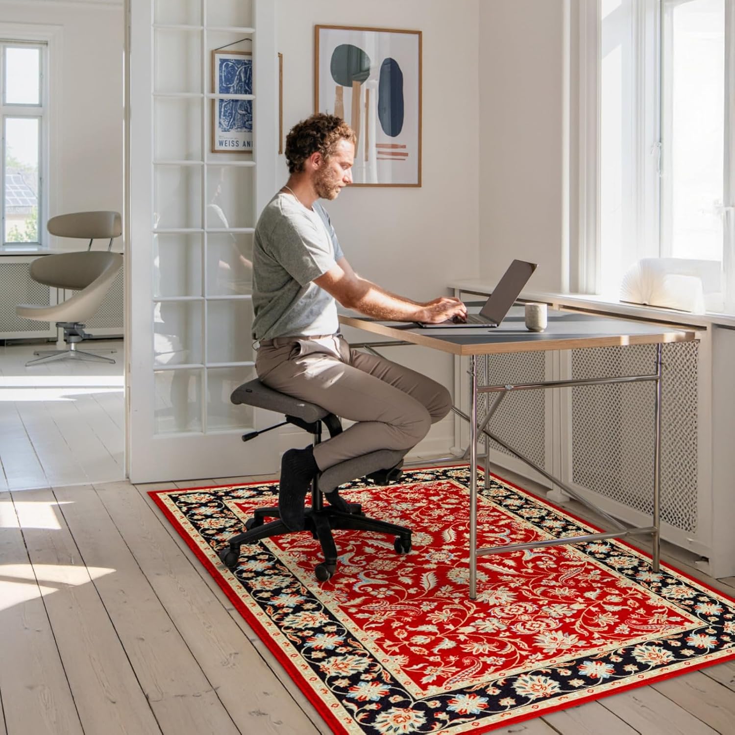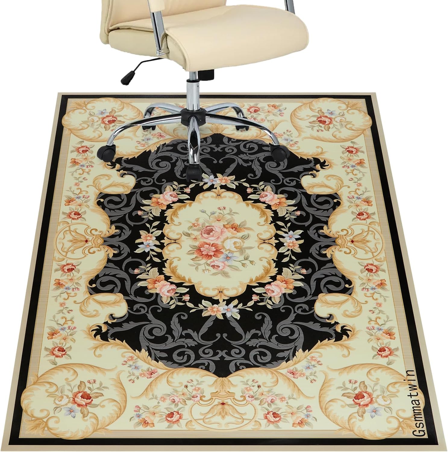 Office Chair Mat, Gsmmatwin 48″x60″ (4mm) Red Flower Chair Mat, Anti-Slip Under Desk Chair Carpet for Hardwood Floor, Foldable and Machine Washable Under Desk Rug for Office Home