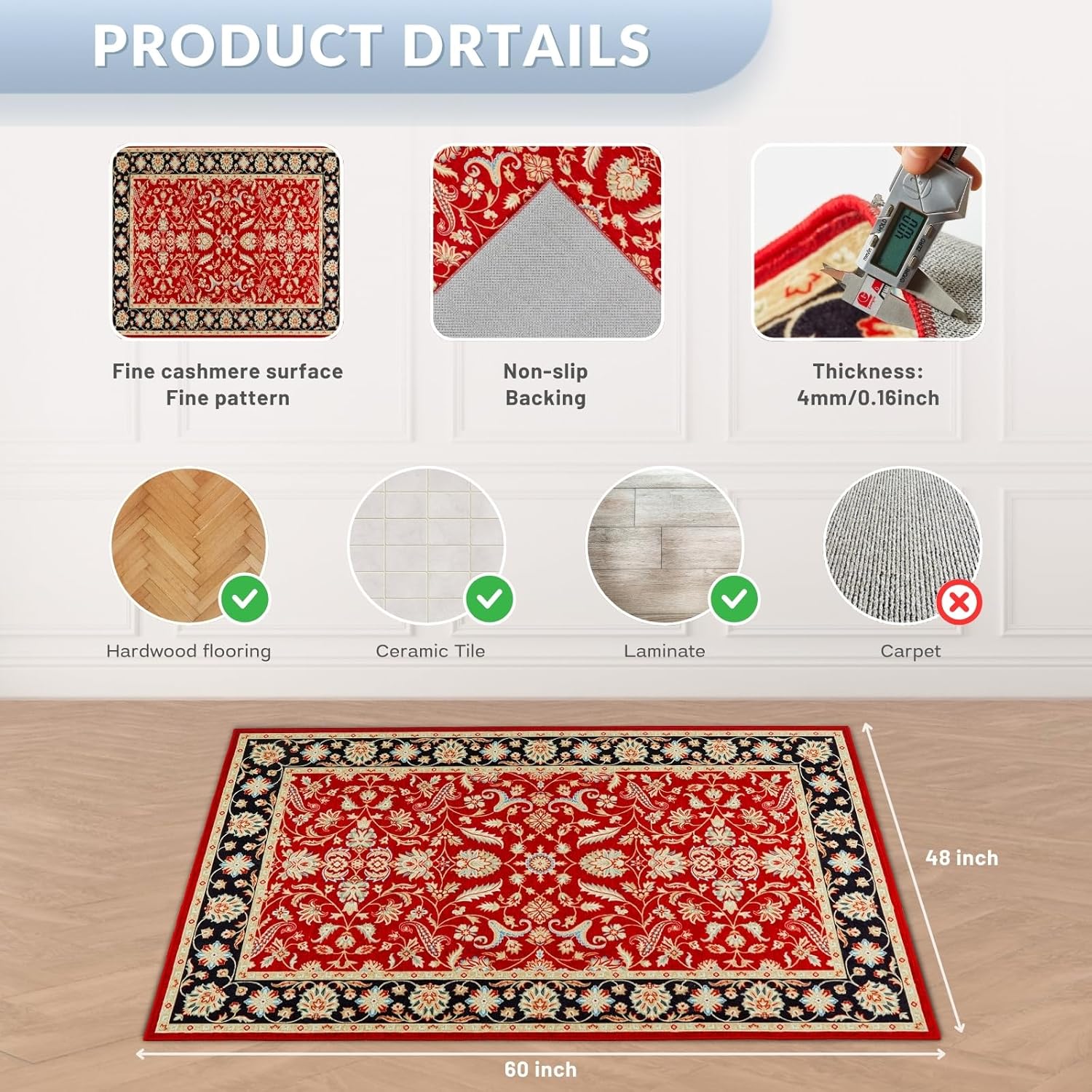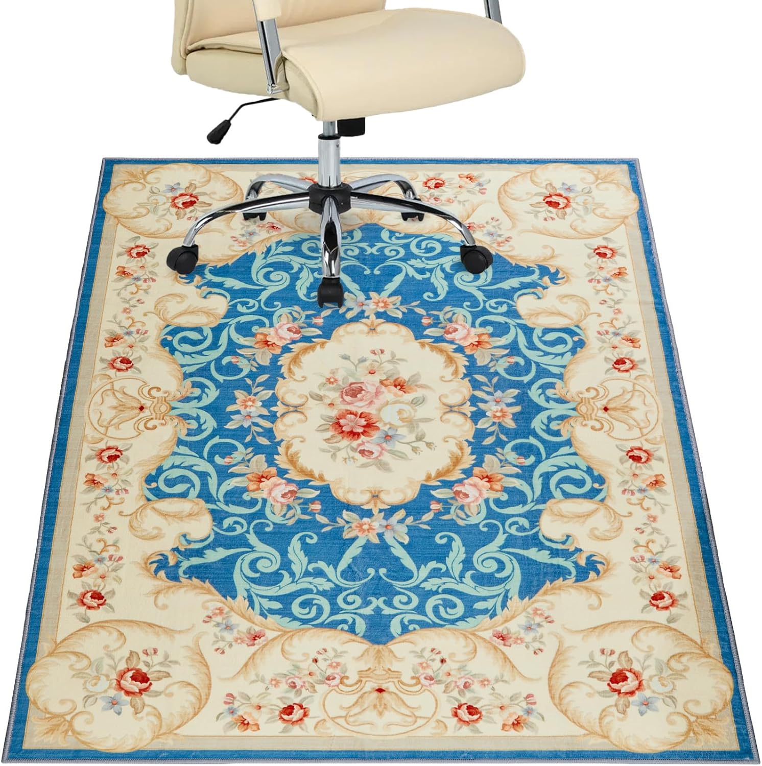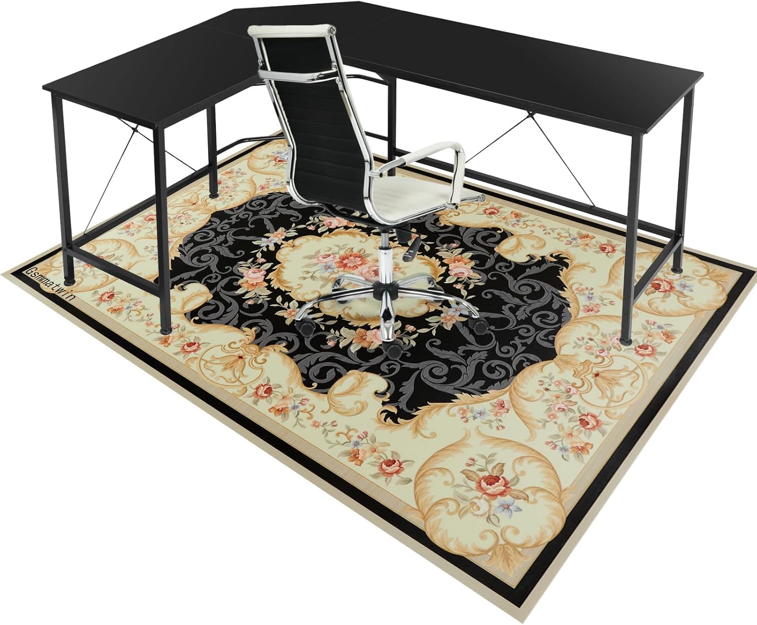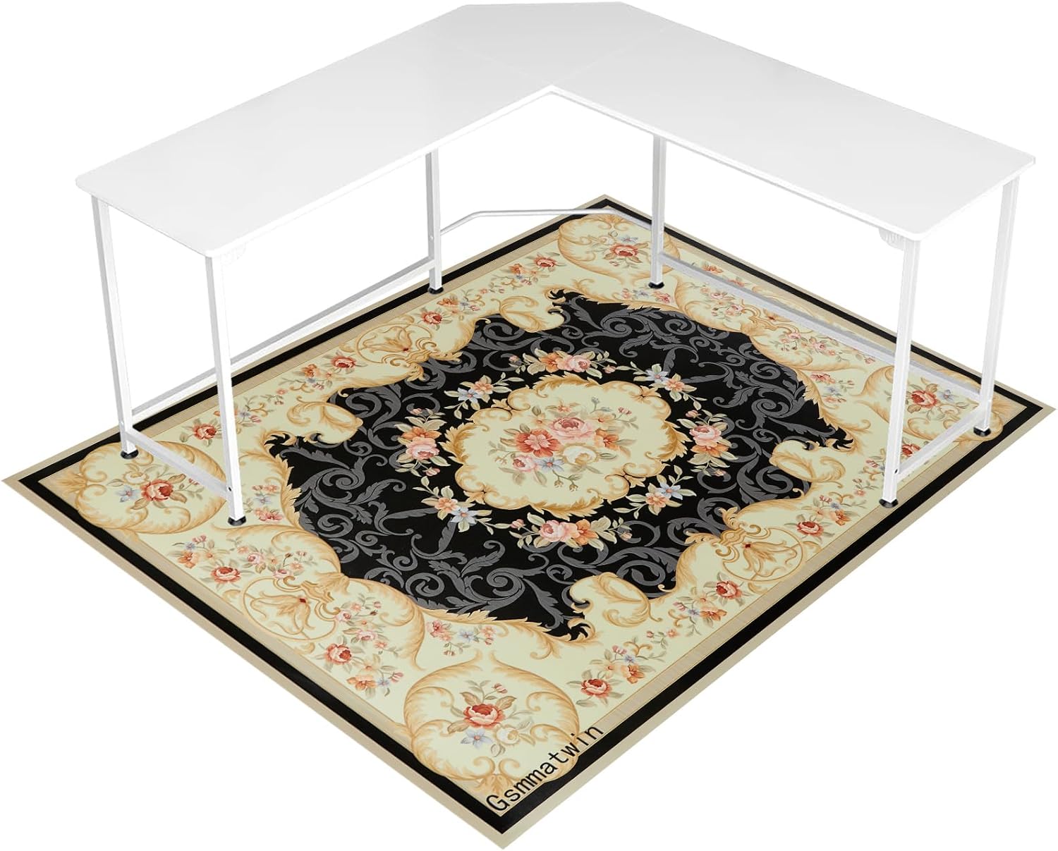 Office Chair Mat, Gsmmatwin 48″x60″ (4mm) Red Flower Chair Mat, Anti-Slip Under Desk Chair Carpet for Hardwood Floor, Foldable and Machine Washable Under Desk Rug for Office Home