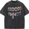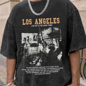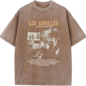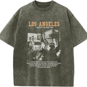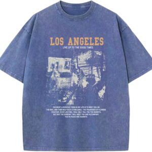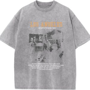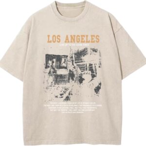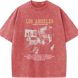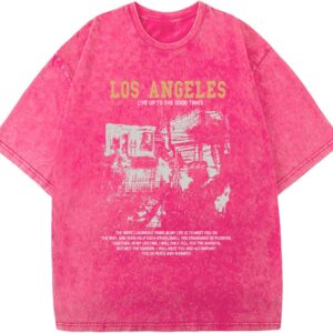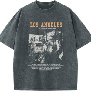 Pairxily Oversized Graphic Tshirts for Men Acid Wash Los Angeles Vintage Tees Streetwear Baggy Cotton Shirts Casual Tops