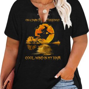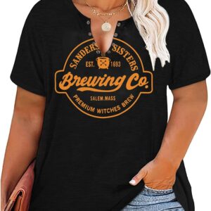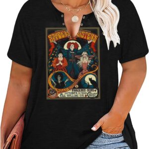 Plus Size Halloween V-Neck T-Shirt Women Sanderson Witch Museum Graphic Tees Hocus Pocus Short Sleeve Shirts Tops