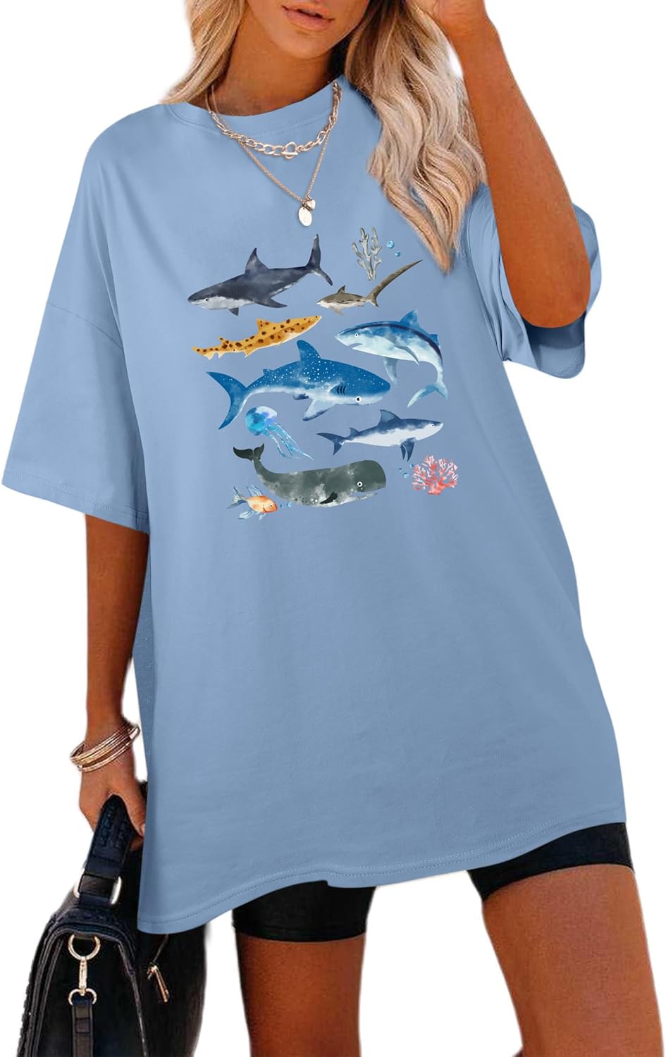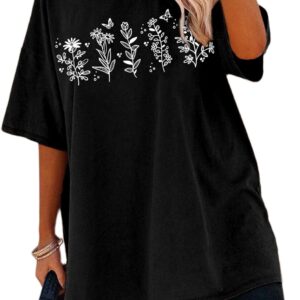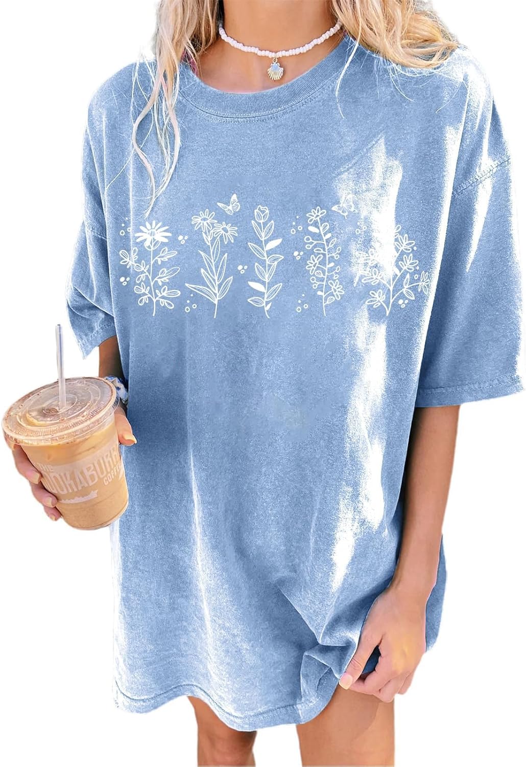 Remidoo Women's Casual Short Sleeve Graphic Oversized T Shirt